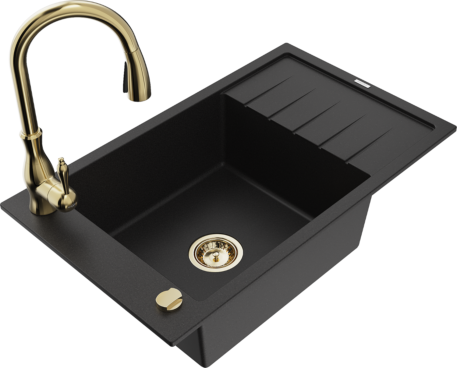 Mexen Elias chiuvetă de bucătărie din granit cu o singură cuvă și baterie de bucătărie Savita, negru - 6511-77-672601-50