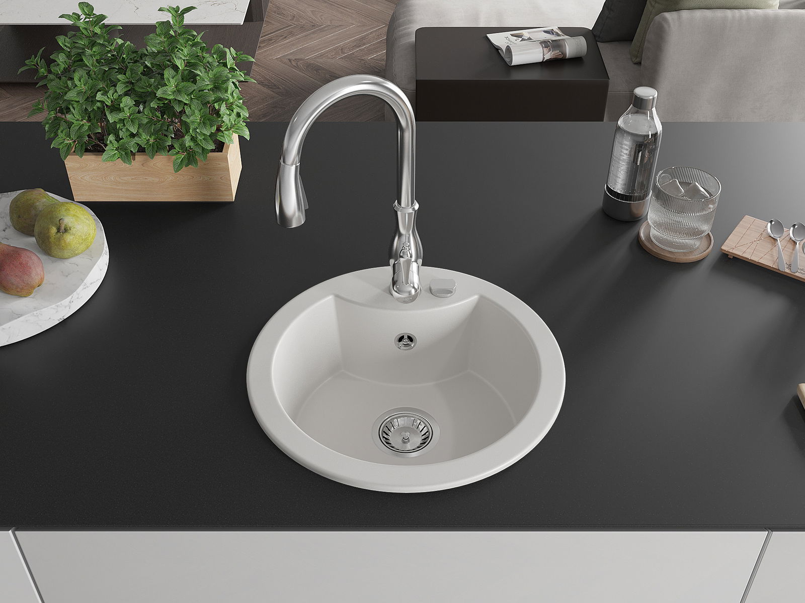 Suprafața chiuvetei este rezistentă la pete și decolorarea, datorită căreia este ușor de curățat și își păstrează culoarea mult timp. Estetică și practic completarea fiecărei bucătării.