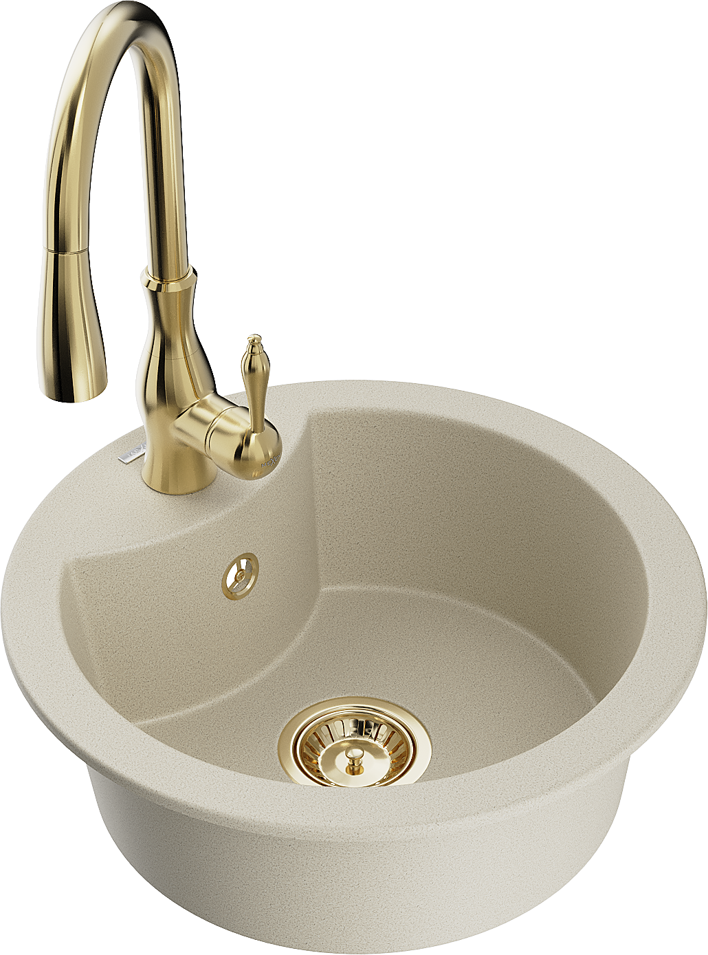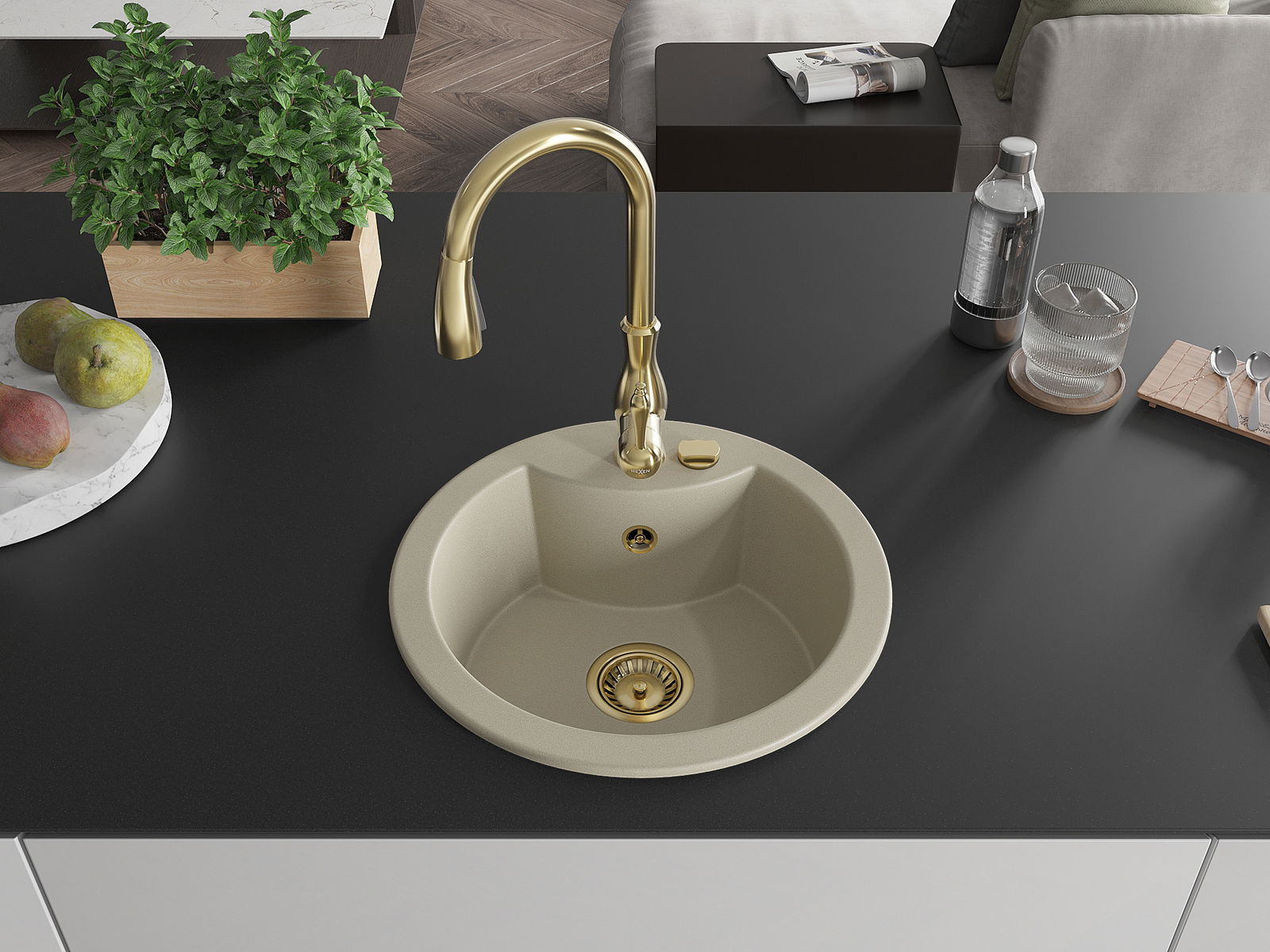 Mexen Diego chiuvetă de bucătărie din granit cu 1 compartiment și baterie de bucătărie Savita, bej - 6512-69-672601-50