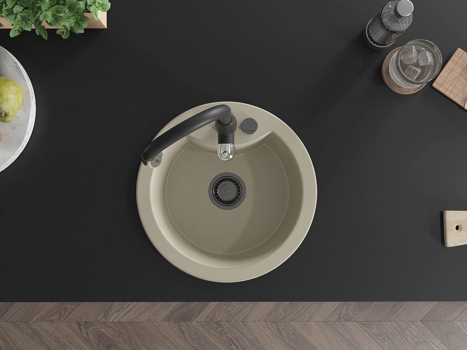 Mexen Diego chiuvetă din granit cu 1 compartiment și baterie de bucătărie Savita, bej - 6512-69-672601-70