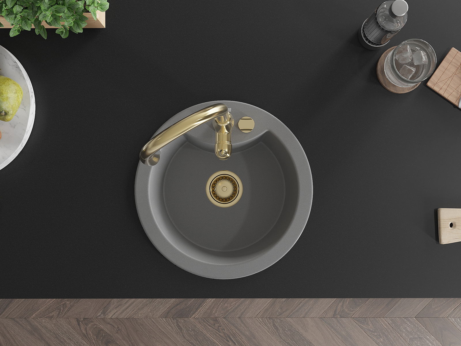 Chiuveta are o gaură prezentată cu un diametru de 35 mm pentru auto -burst. Poate fi folosit, printre altele Pentru montarea unui distribuitor de lichid care va elimina prezența sticlelor de plastic în bucătărie și îi va oferi un finisaj elegant.