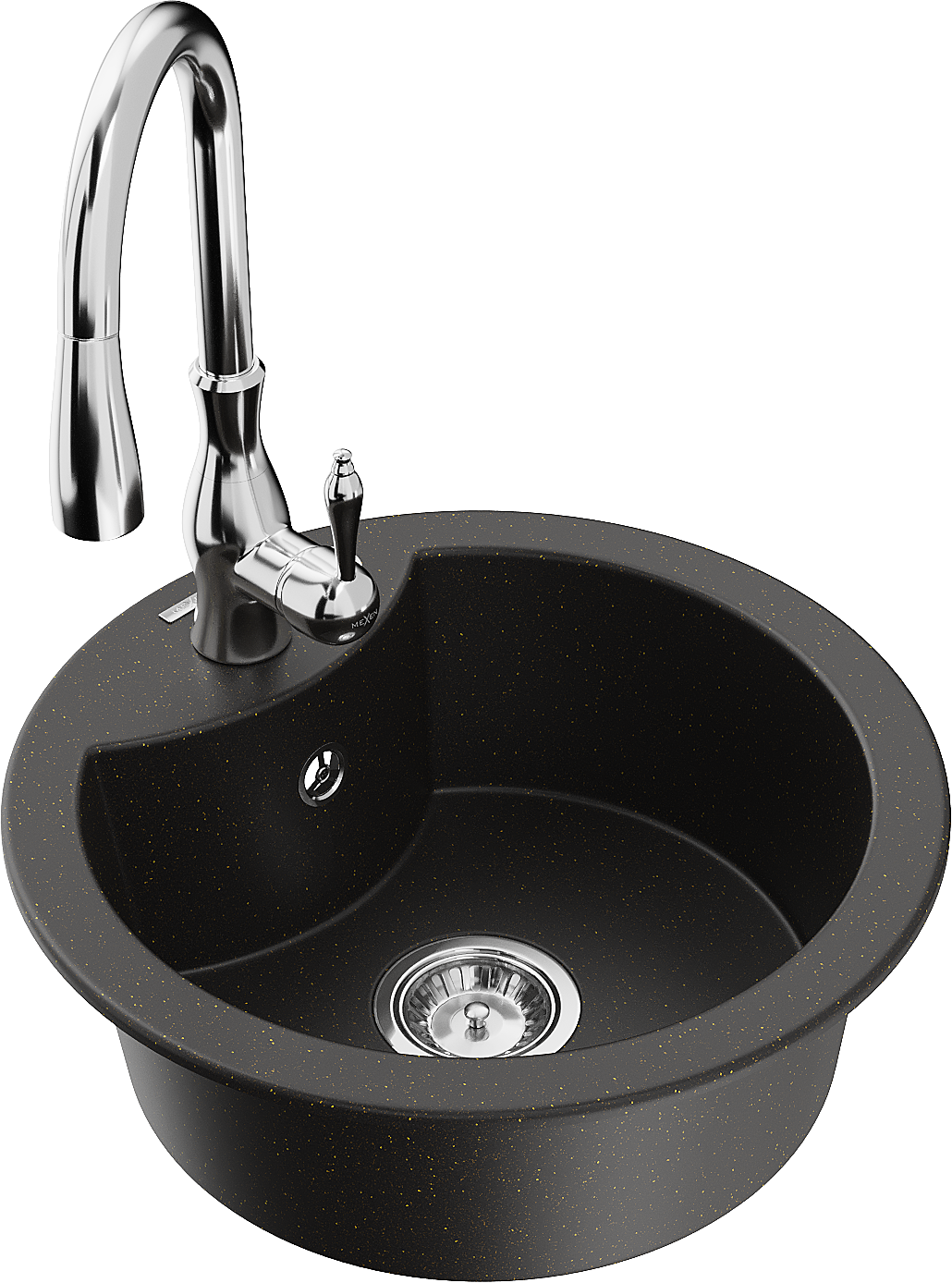 Mexen Diego chiuvetă de granit cu o singură cuvă cu baterie de bucătărie Savita, negru/auriu metalizat - 6512-75-672601-00