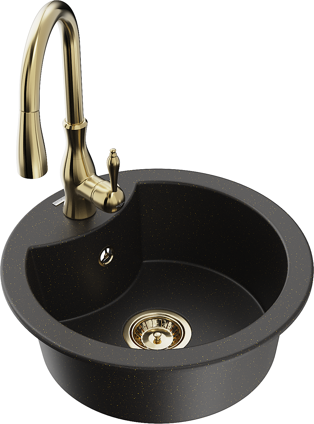 Mexen Diego chiuvetă de granit cu 1 compartiment cu baterie de bucătărie Savita, negru/auriu metalic - 6512-75-672601-50