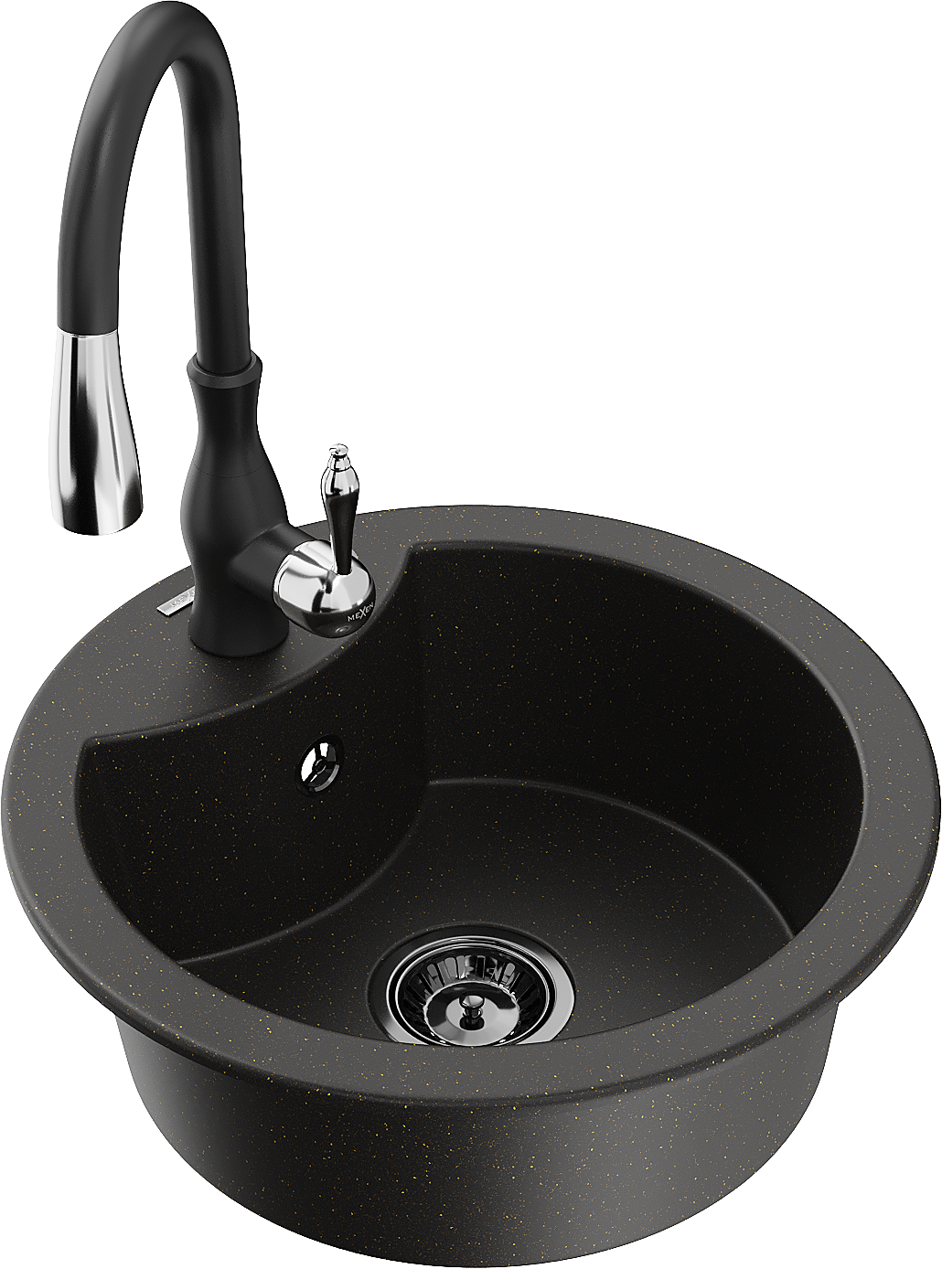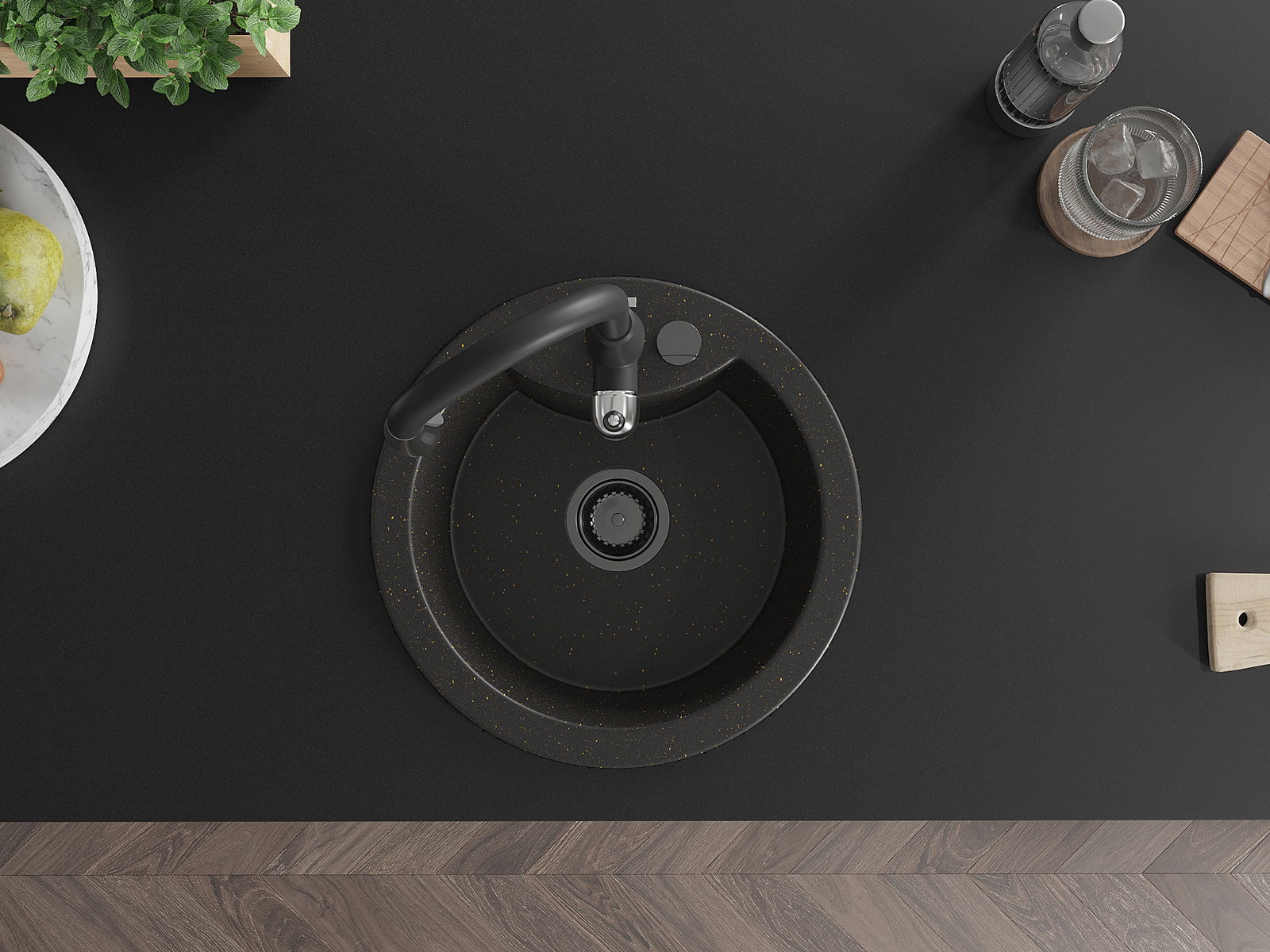 Mexen Diego chiuvetă de granit cu 1 compartiment și baterie de bucătărie Savita, negru/auriu metalic - 6512-75-672601-70-B