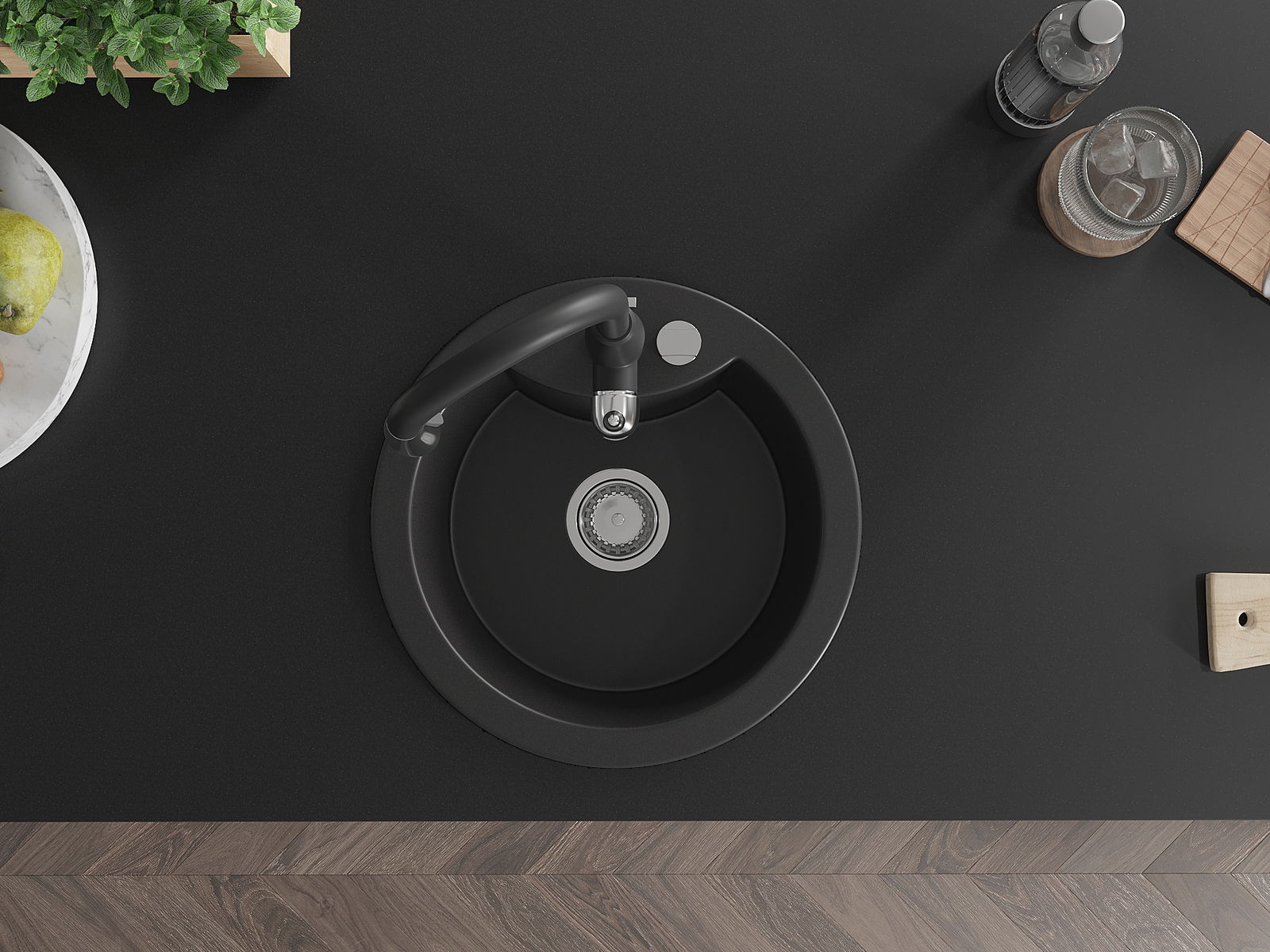 Mexen Diego chiuvetă de granit cu o singură cuvă cu baterie de bucătărie Savita, negru - 6512-77-672601-70