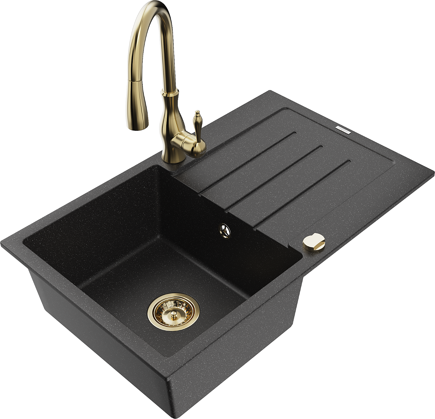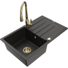 Mexen Bruno chiuvetă de granit cu 1 cuvă cu scurgător și baterie de bucătărie Savita, negru/metalizat argintiu