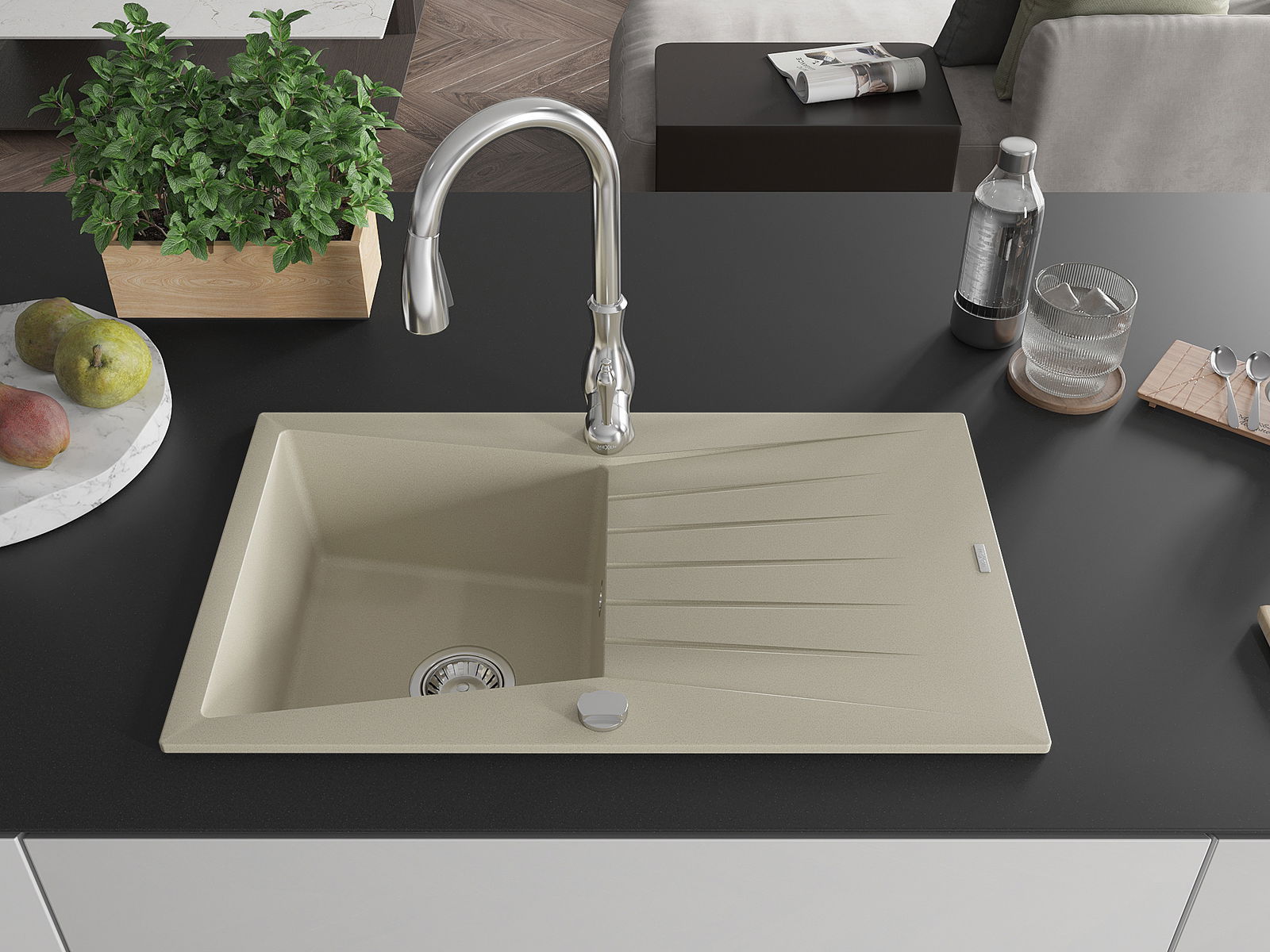 Suprafața chiuvetei este rezistentă la pete și decolorarea, datorită căreia este ușor de curățat și își păstrează culoarea mult timp. Estetică și practic completarea fiecărei bucătării.