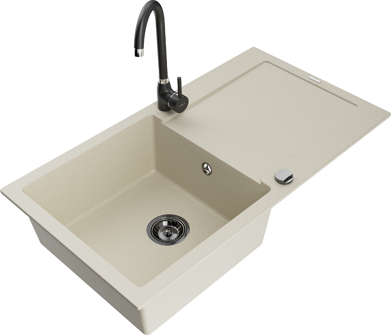 Mexen Leo chiuvetă din granit cu 1 compartiment, cu scurgător și baterie de bucătărie Telma, bej - 6501-69-670200-70