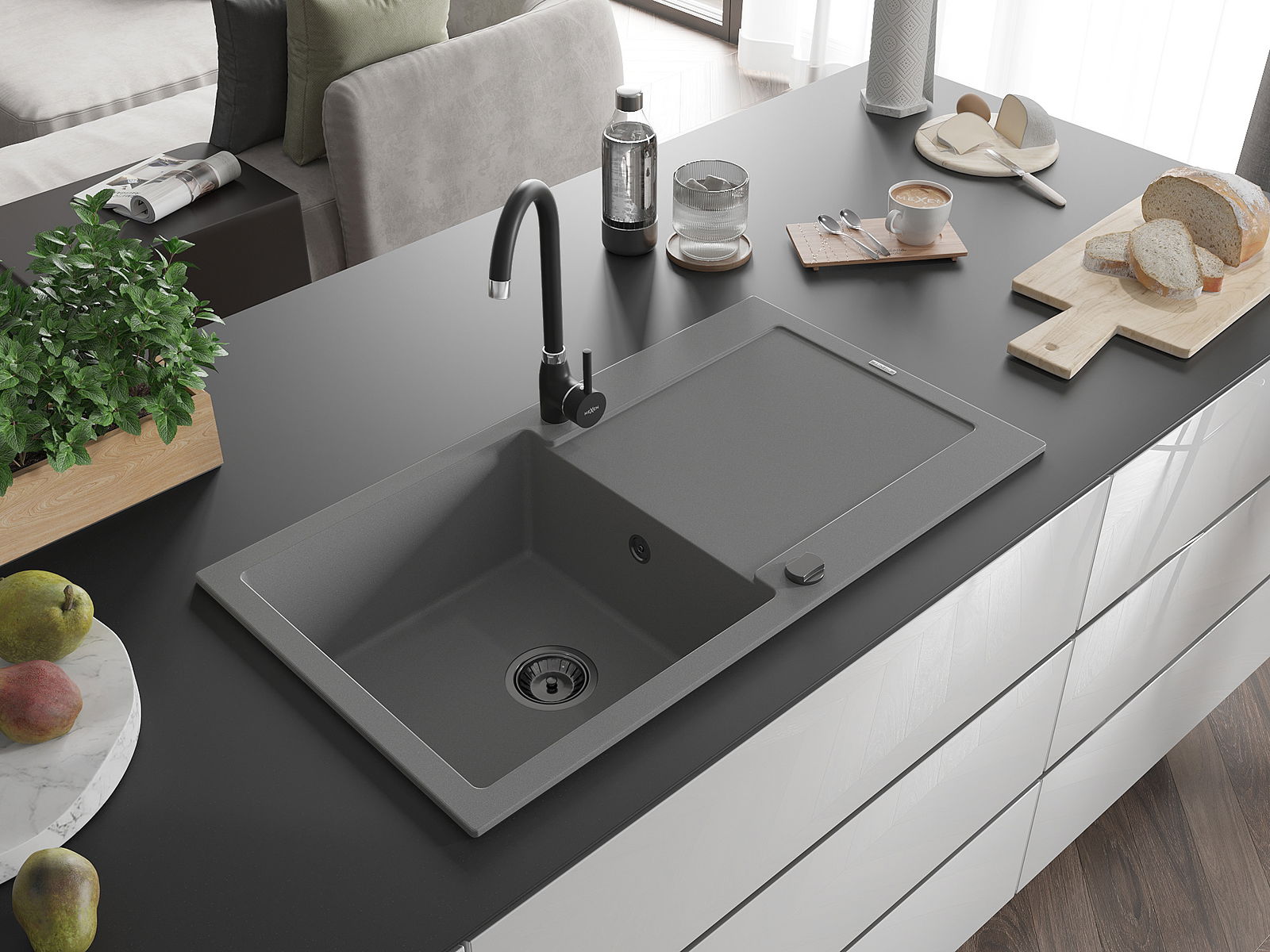 Chiuveta este confecționată din granit de înaltă calitate. Este un complement elegant și, mai ales, practic pentru fiecare bucătărie, indiferent de stilul său. Durabilitatea de înaltă calitate și granit asigură mulți ani de utilizare.