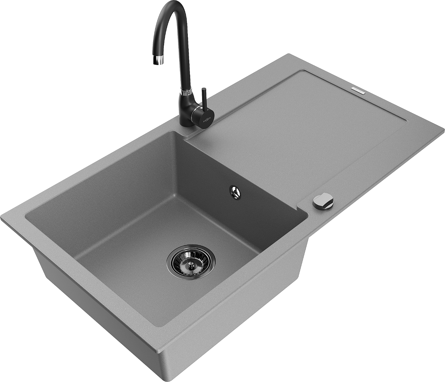 Mexen Leo chiuvetă de granit 1-cameră cu scurgător și baterie de bucătărie Telma, gri - 6501-71-670200-70-B