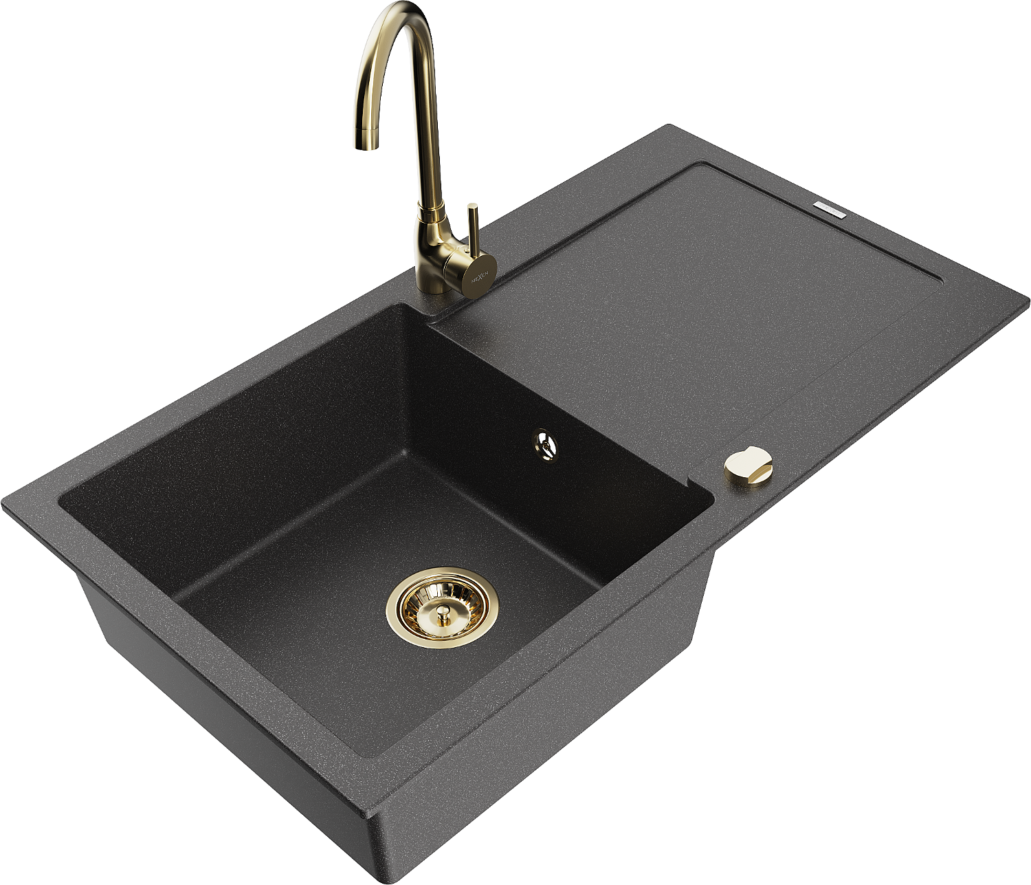 Mexen Leo chiuvetă de granit cu 1 cuvă și scurgător și baterie de bucătărie Telma, negru înspicat - 6501-76-670200-50