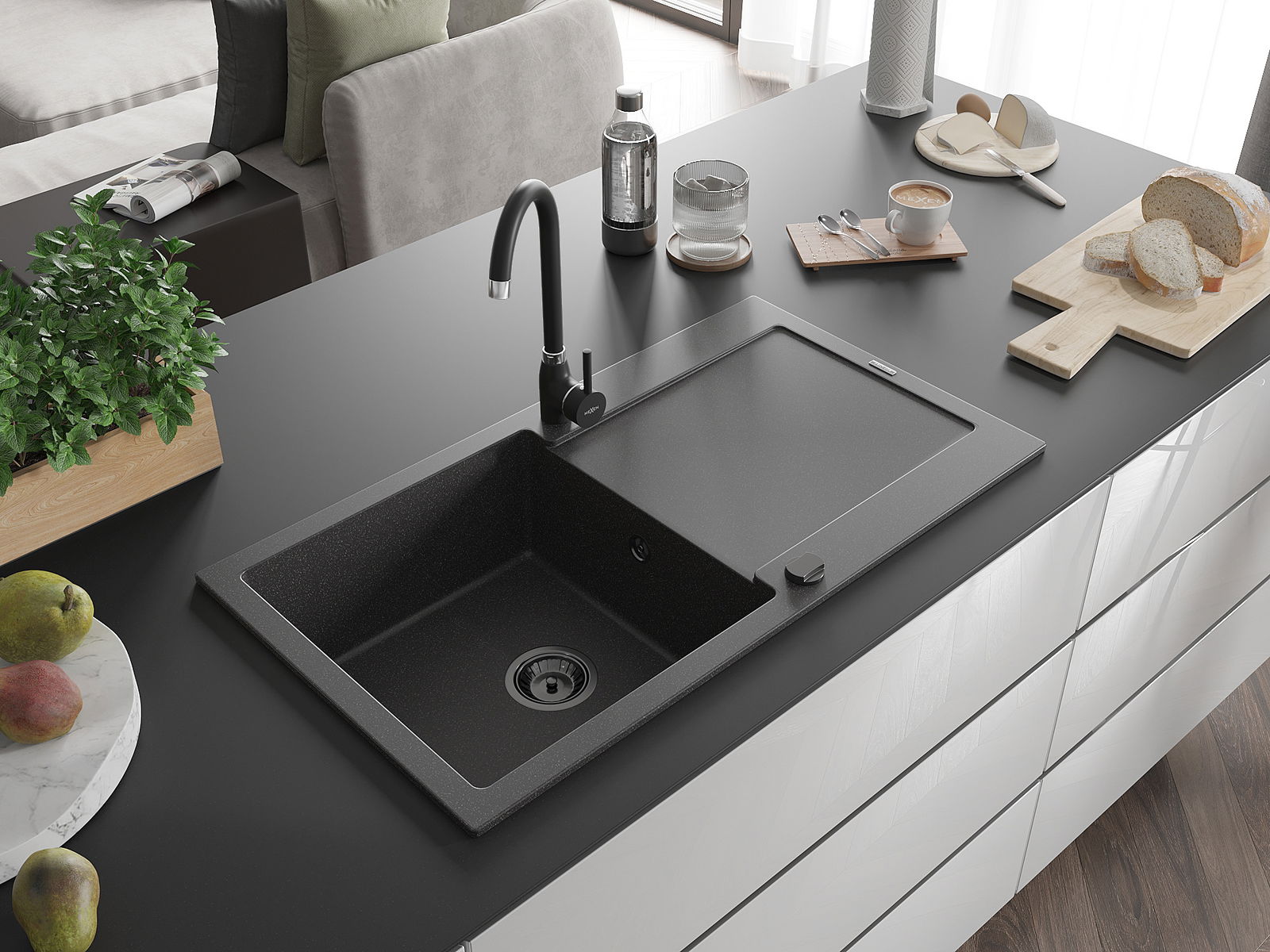 Chiuveta este confecționată din granit de înaltă calitate. Este un complement elegant și, mai ales, practic pentru fiecare bucătărie, indiferent de stilul său. Durabilitatea de înaltă calitate și granit asigură mulți ani de utilizare.