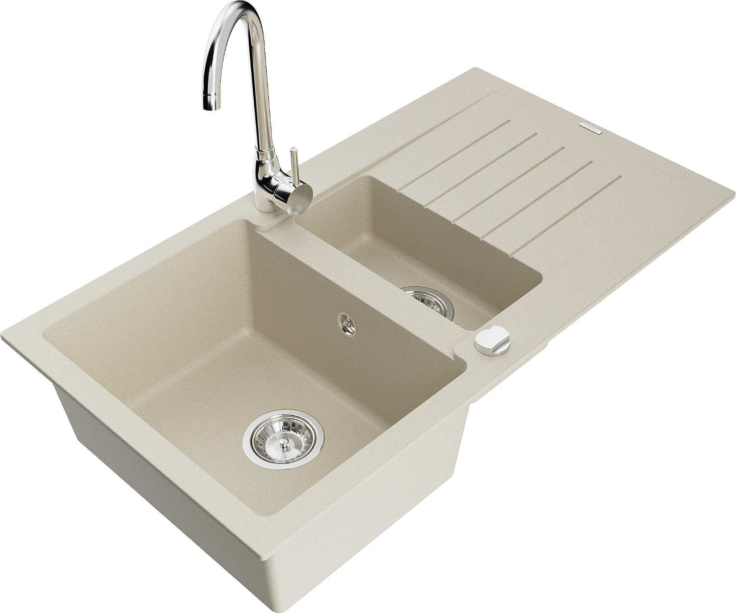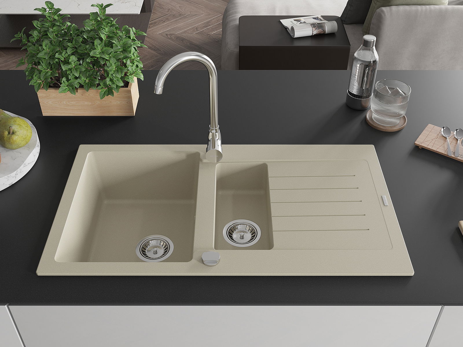 Suprafața chiuvetei este rezistentă la pete și decolorarea, datorită căreia este ușor de curățat și își păstrează culoarea mult timp. Estetică și practic completarea fiecărei bucătării.