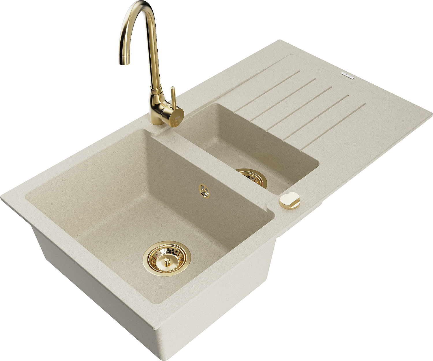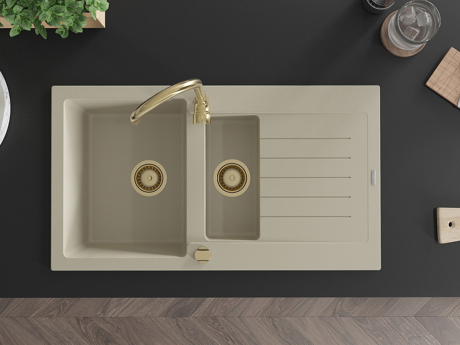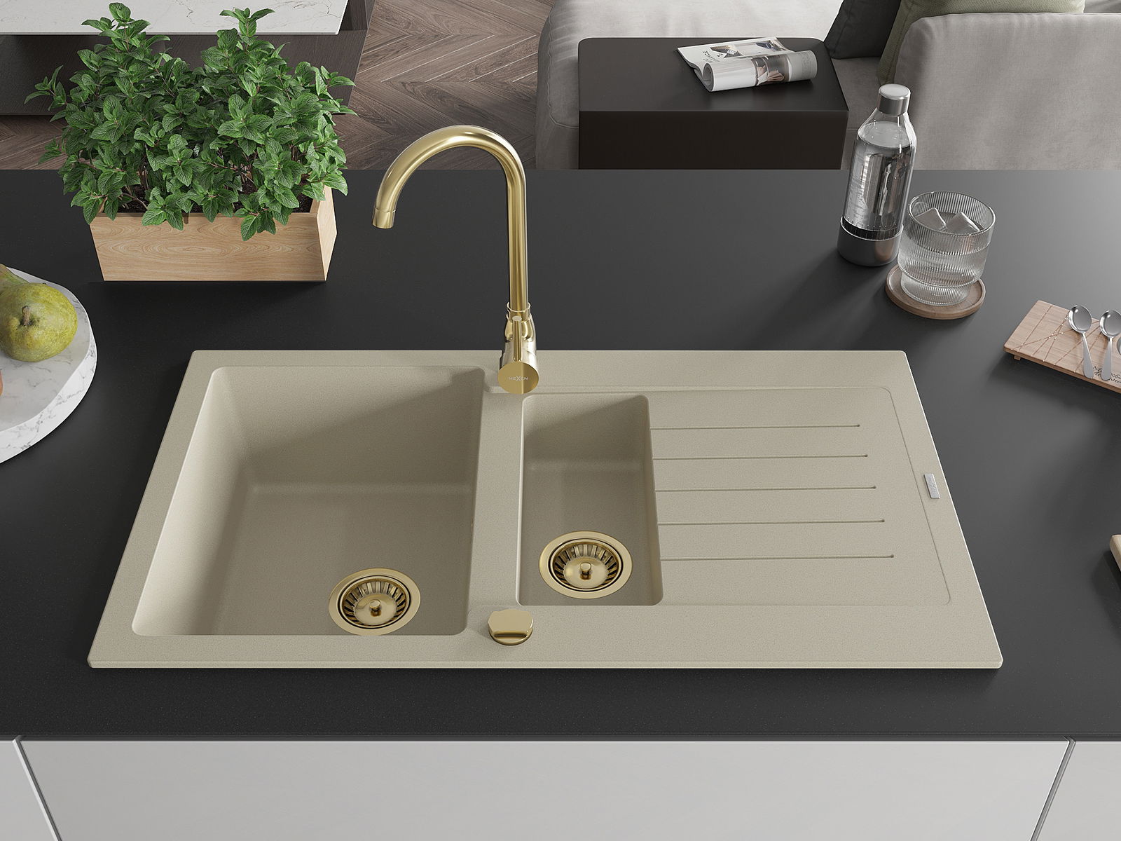 Mexen Matias chiuvetă granit 1,5-camere cu scurgător și baterie bucătărie Telma, bej - 6502-69-670200-50