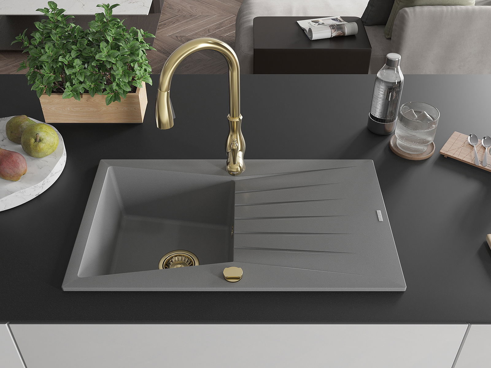 Suprafața chiuvetei este rezistentă la pete și decolorarea, datorită căreia este ușor de curățat și își păstrează culoarea mult timp. Estetică și practic completarea fiecărei bucătării.