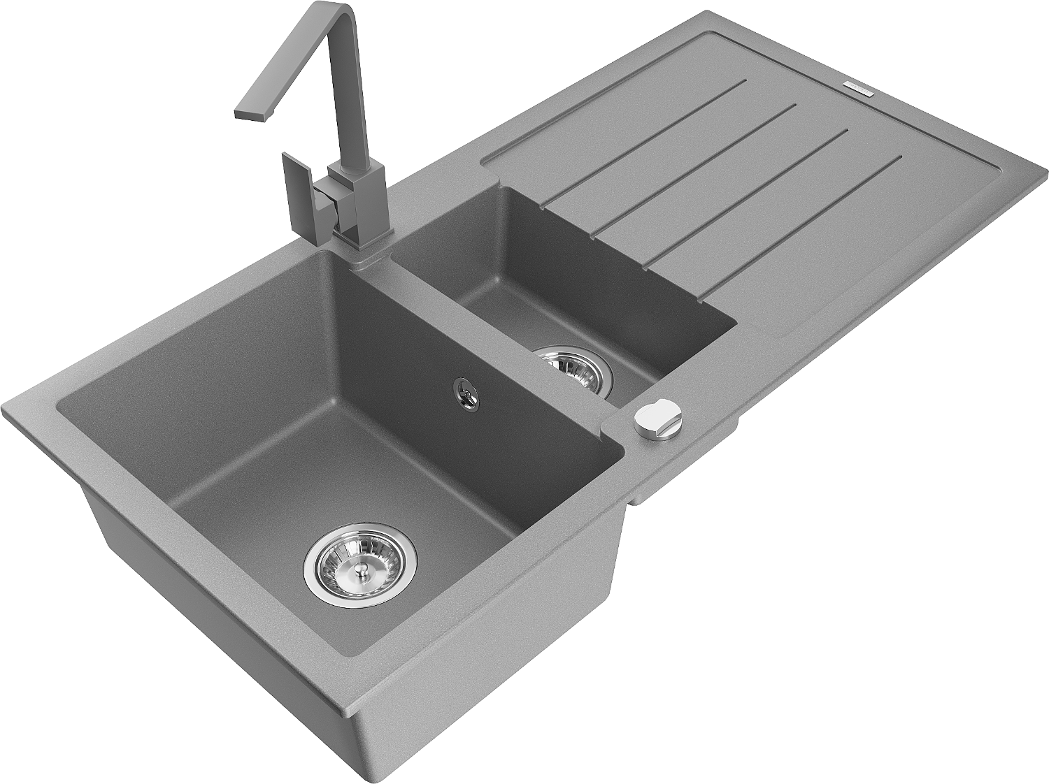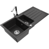 Mexen Andres chiuvetă din granit cu 1,5 compartimente, cu scurgător și baterie de bucătărie Rita, gri - 6515-71-670300-71