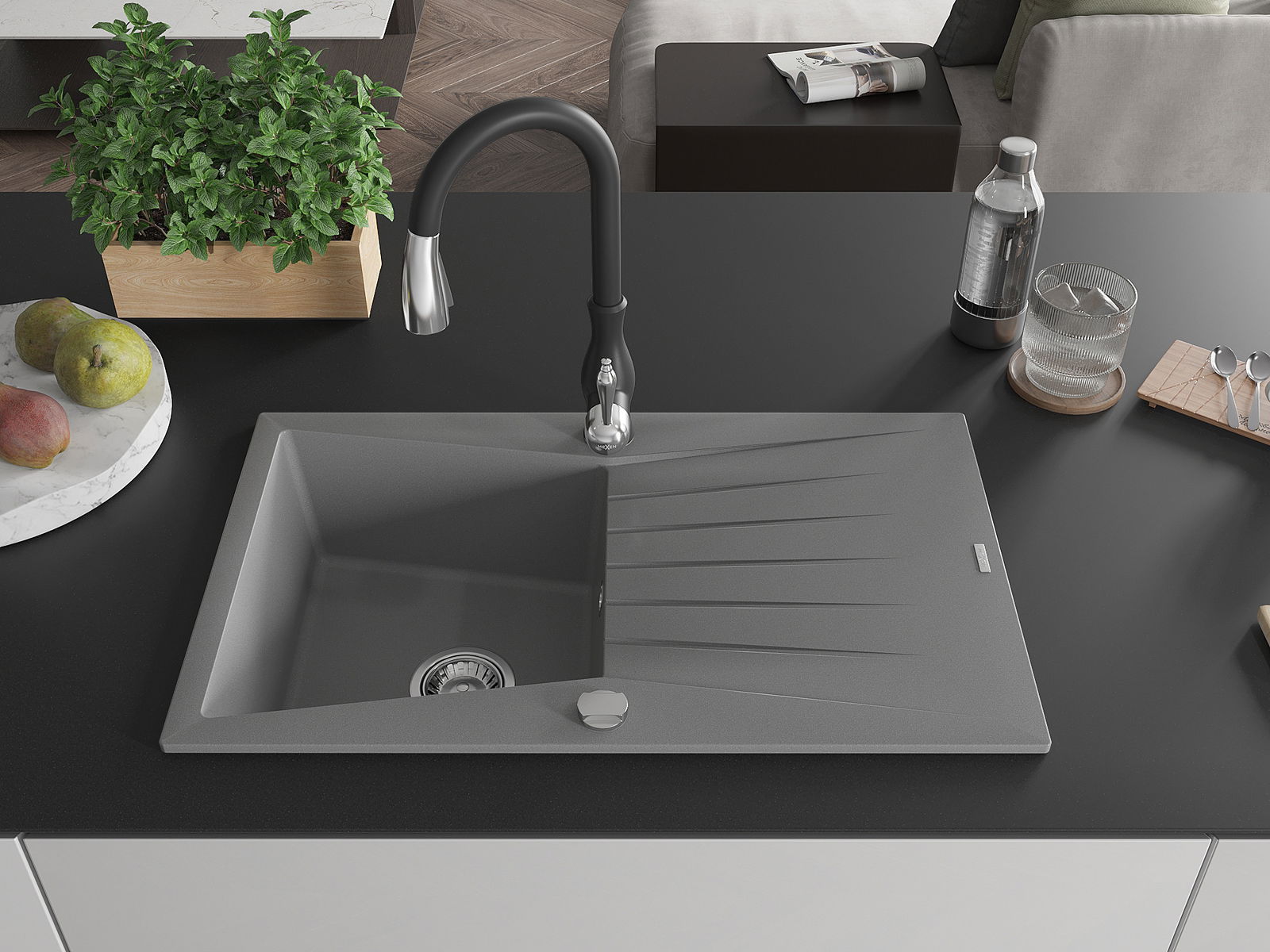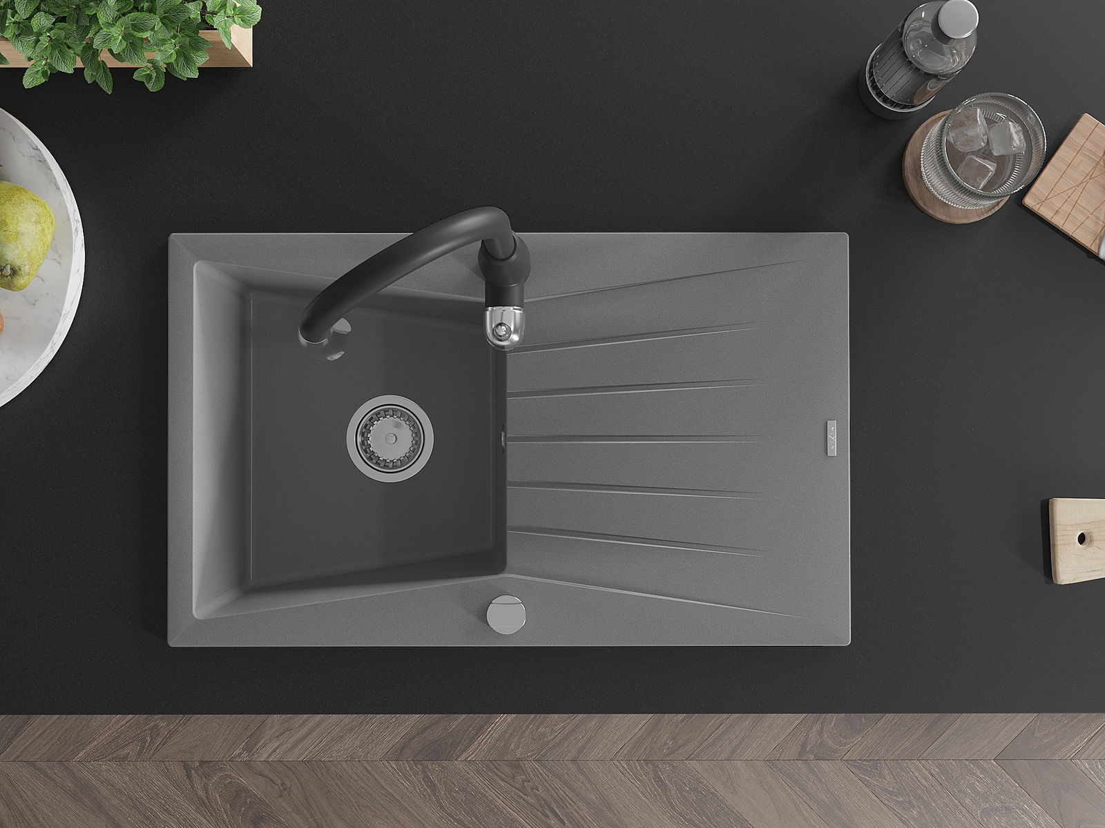 Chiuveta a fost realizată din granit de înaltă calitate. Reprezintă un complement elegant și, mai presus de toate, practic pentru orice bucătărie, indiferent de stilul acesteia. Calitatea înaltă și durabilitatea granitului asigură o utilizare de lungă durată.