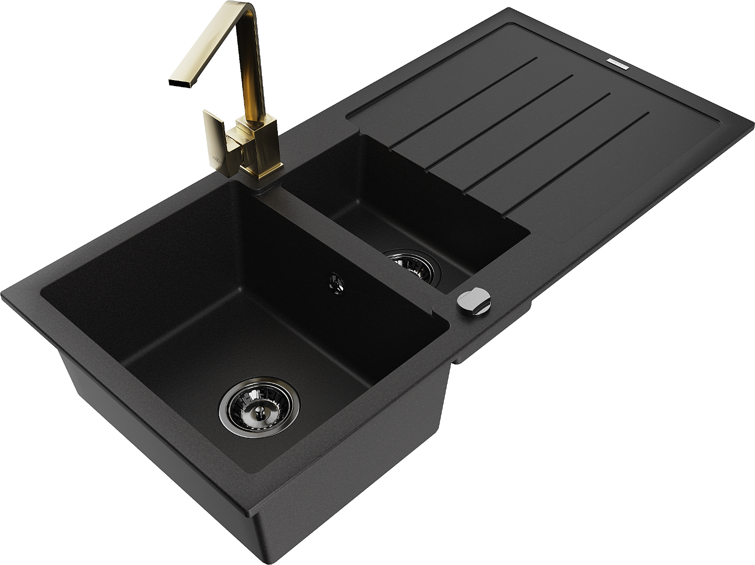 Mexen Andres chiuvetă granit 1,5-camere cu scurgător și baterie bucătărie Rita, negru/metalic auriu- 6515-75-670300-50-B