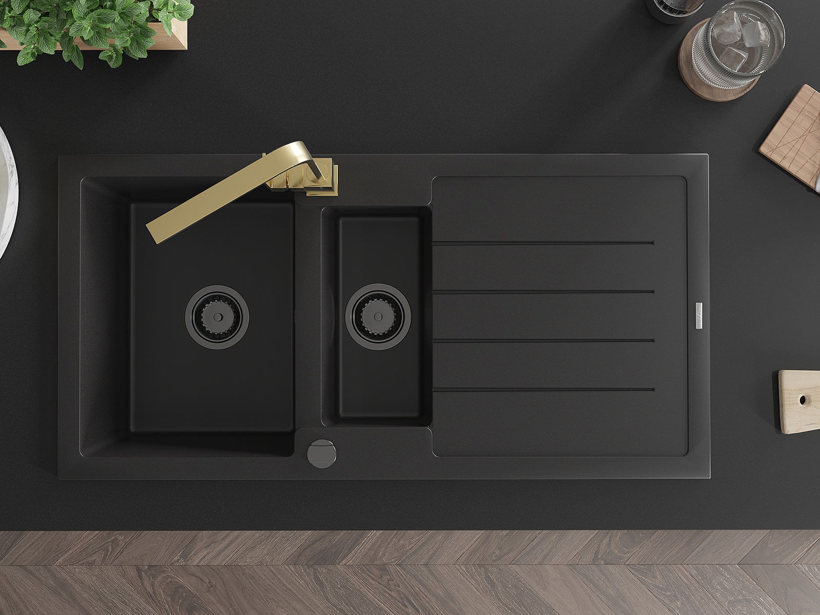 Datorită sistemului de montare universală, chiuveta este reversibilă, iar scurgerea poate fi montată pe blat la stânga sau la dreapta. În acest fel, puteți ajusta cu ușurință pagina la nevoile și condițiile dvs.
