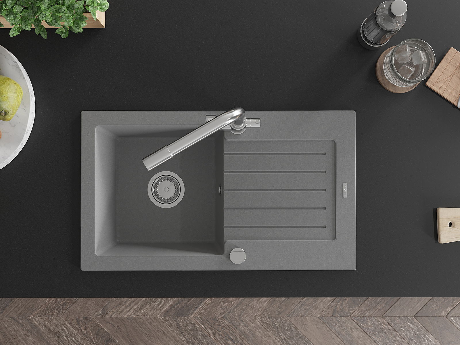 Chiuveta a fost realizată din granit de înaltă calitate. Reprezintă un complement elegant și, mai presus de toate, practic pentru orice bucătărie, indiferent de stilul acesteia. Calitatea înaltă și durabilitatea granitului asigură o utilizare de lungă durată.