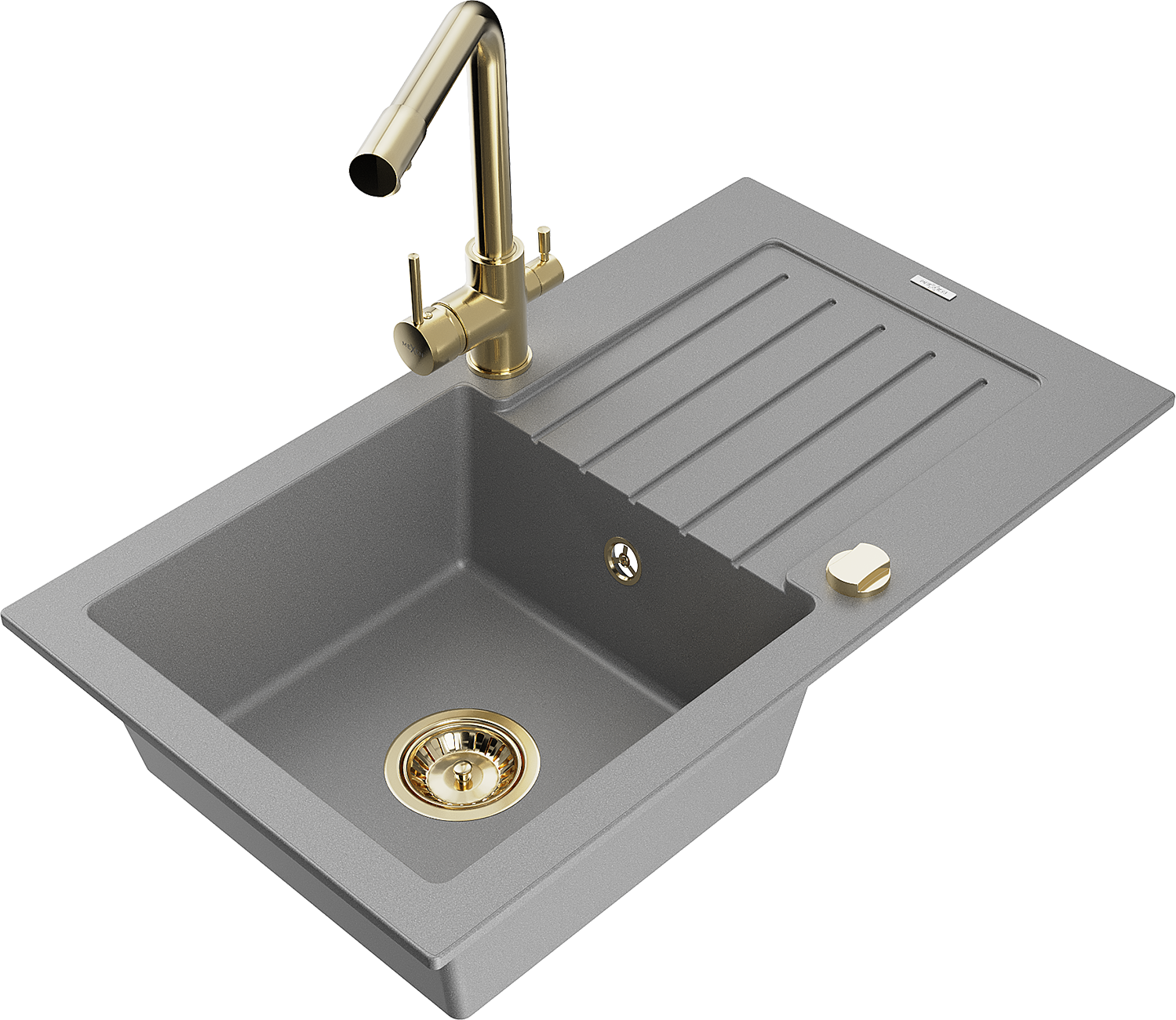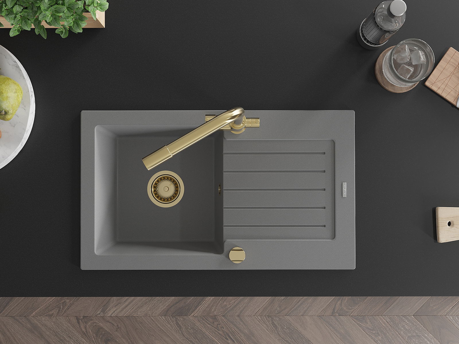 Mexen Pablo chiuvetă de granit cu 1 compartiment cu scurgător și baterie de bucătărie Duero, gri - 6510-71-671600-50