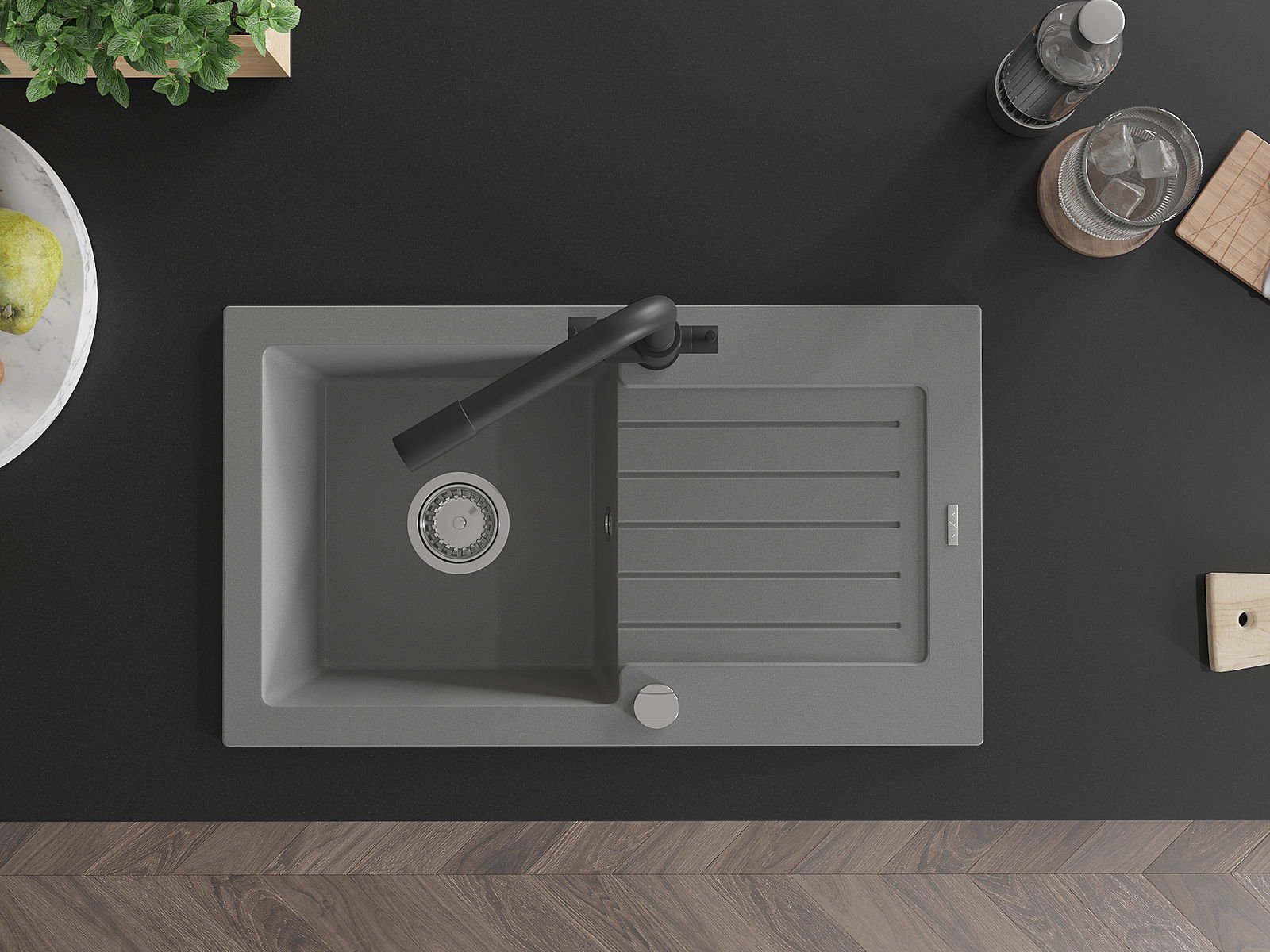 Mexen Pablo chiuvetă de granit cu 1 compartiment, cu scurgător și baterie de bucătărie Duero, gri - 6510-71-671600-70
