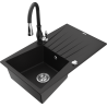 Mexen Cesar chiuvetă de bucătărie din granit cu 1 compartiment, cu scurgător și baterie de bucătărie Savita, neagră