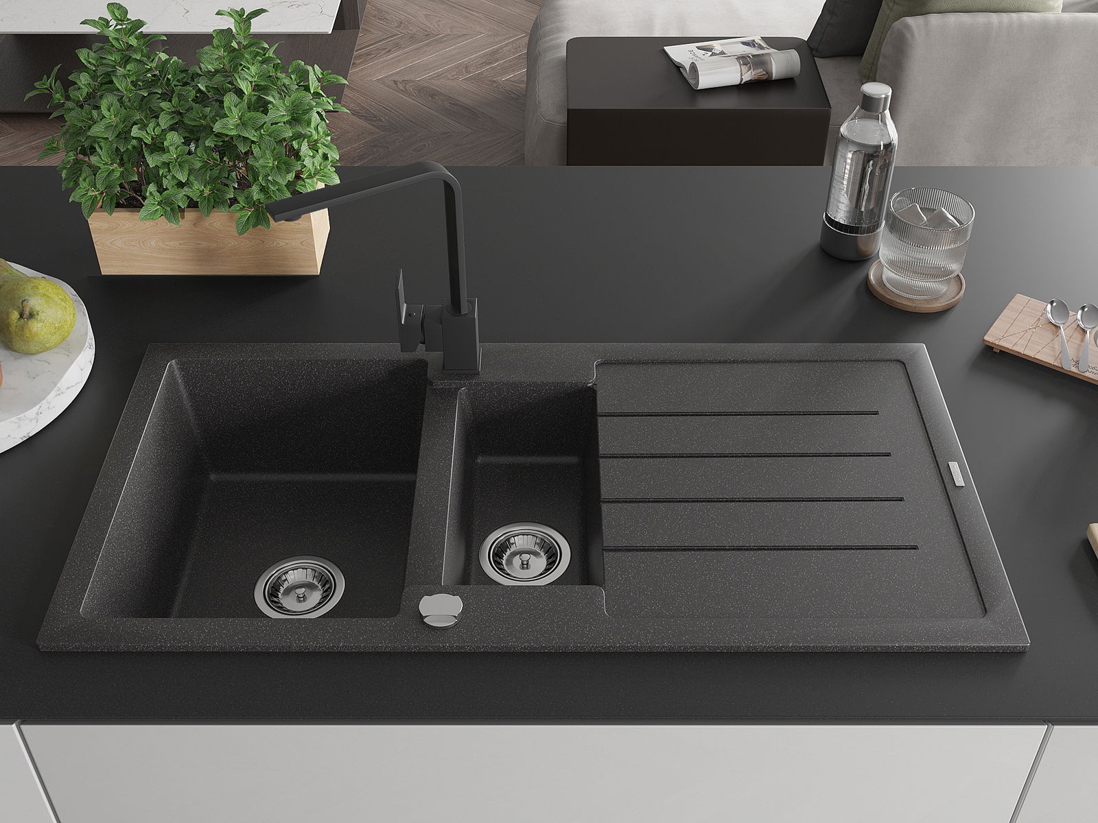 Suprafața chiuvetei este rezistentă la pete și decolorarea, datorită căreia este ușor de curățat și își păstrează culoarea mult timp. Estetică și practic completarea fiecărei bucătării.