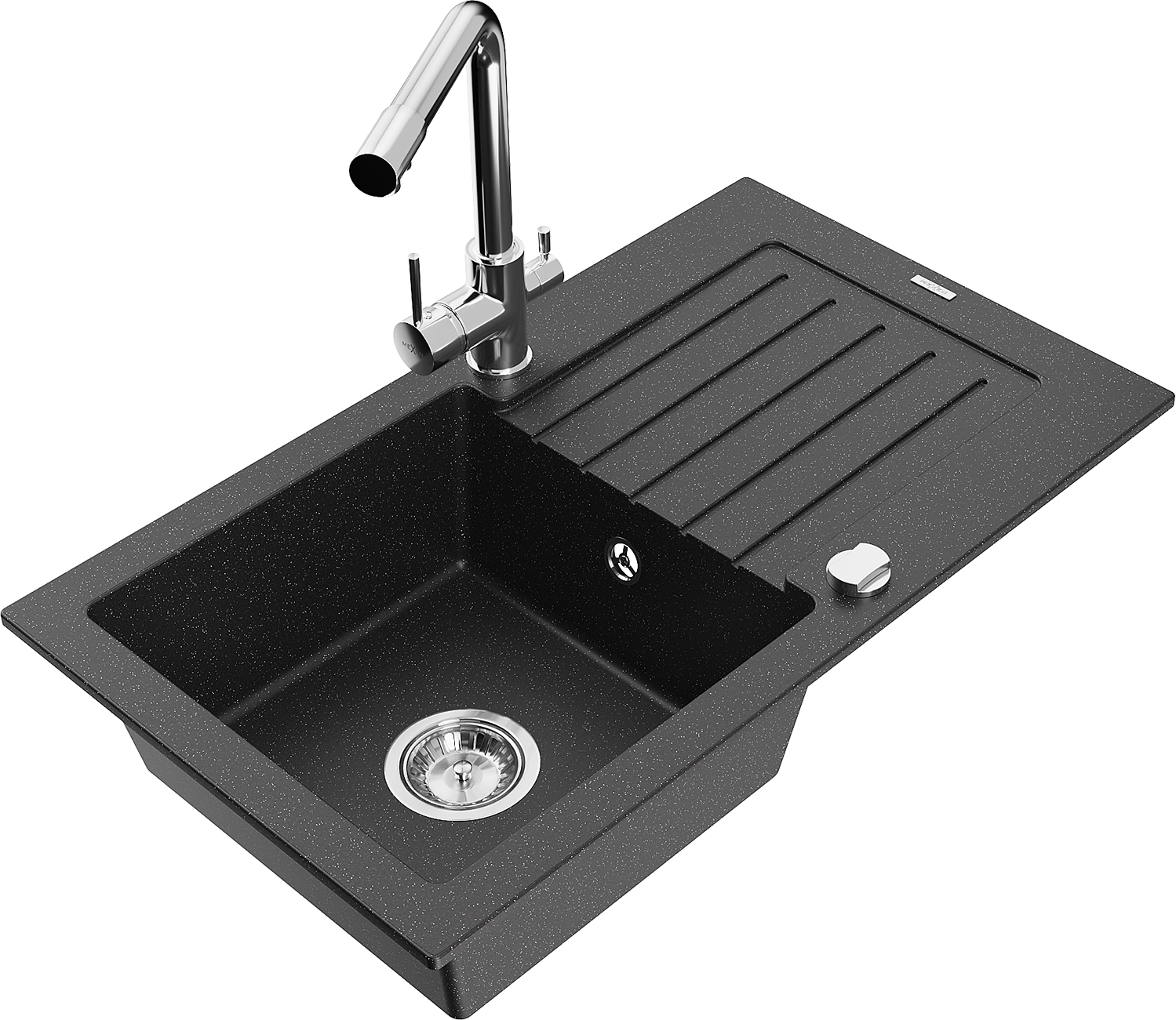 Mexen Pablo chiuvetă din granit cu 1 compartiment cu scurgător și baterie de bucătărie Duero, negru/argintiu metalizat