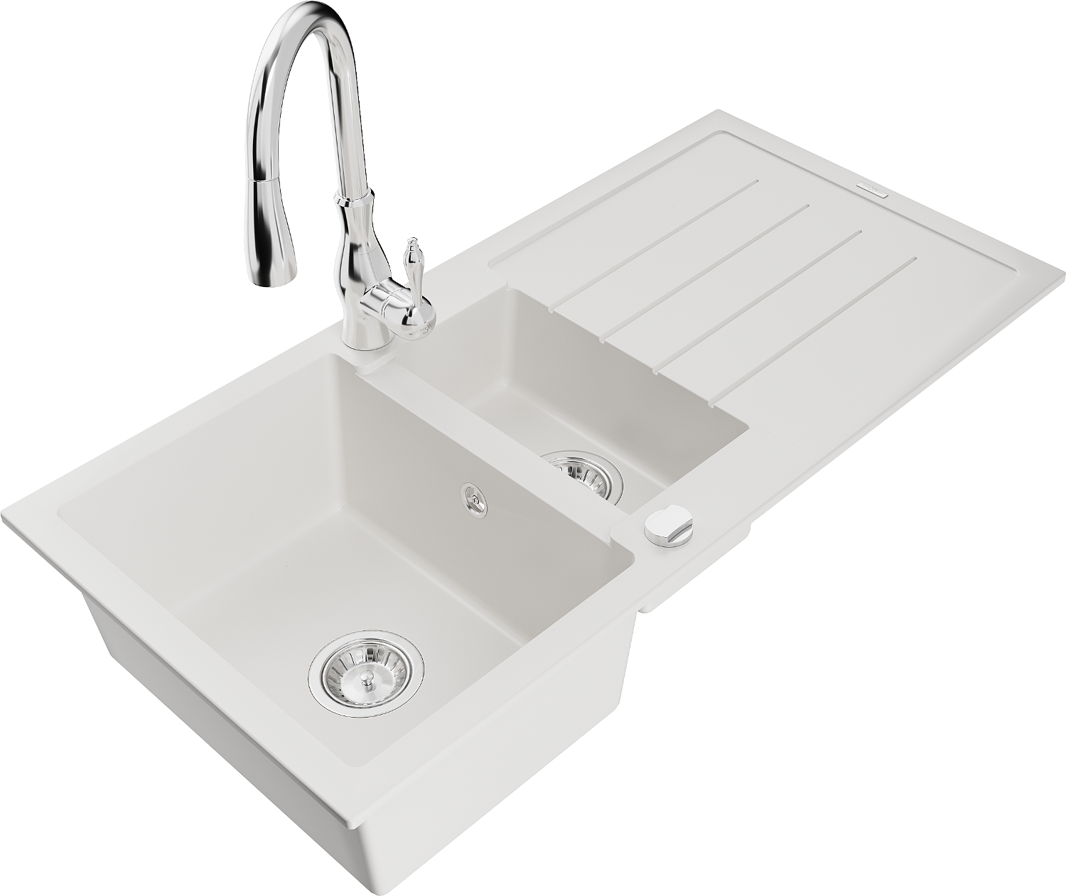 Suprafața chiuvetei este rezistentă la pete și decolorarea, datorită căreia este ușor de curățat și își păstrează culoarea mult timp. Estetică și practic completarea fiecărei bucătării.