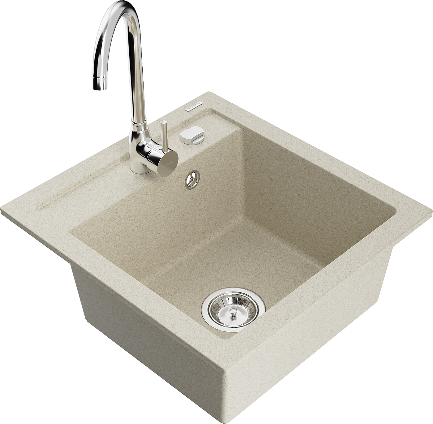 Mexen Vito chiuvetă de bucătărie din granit cu 1 compartiment și baterie de bucătărie Telma, bej - 6503-69-670200-00
