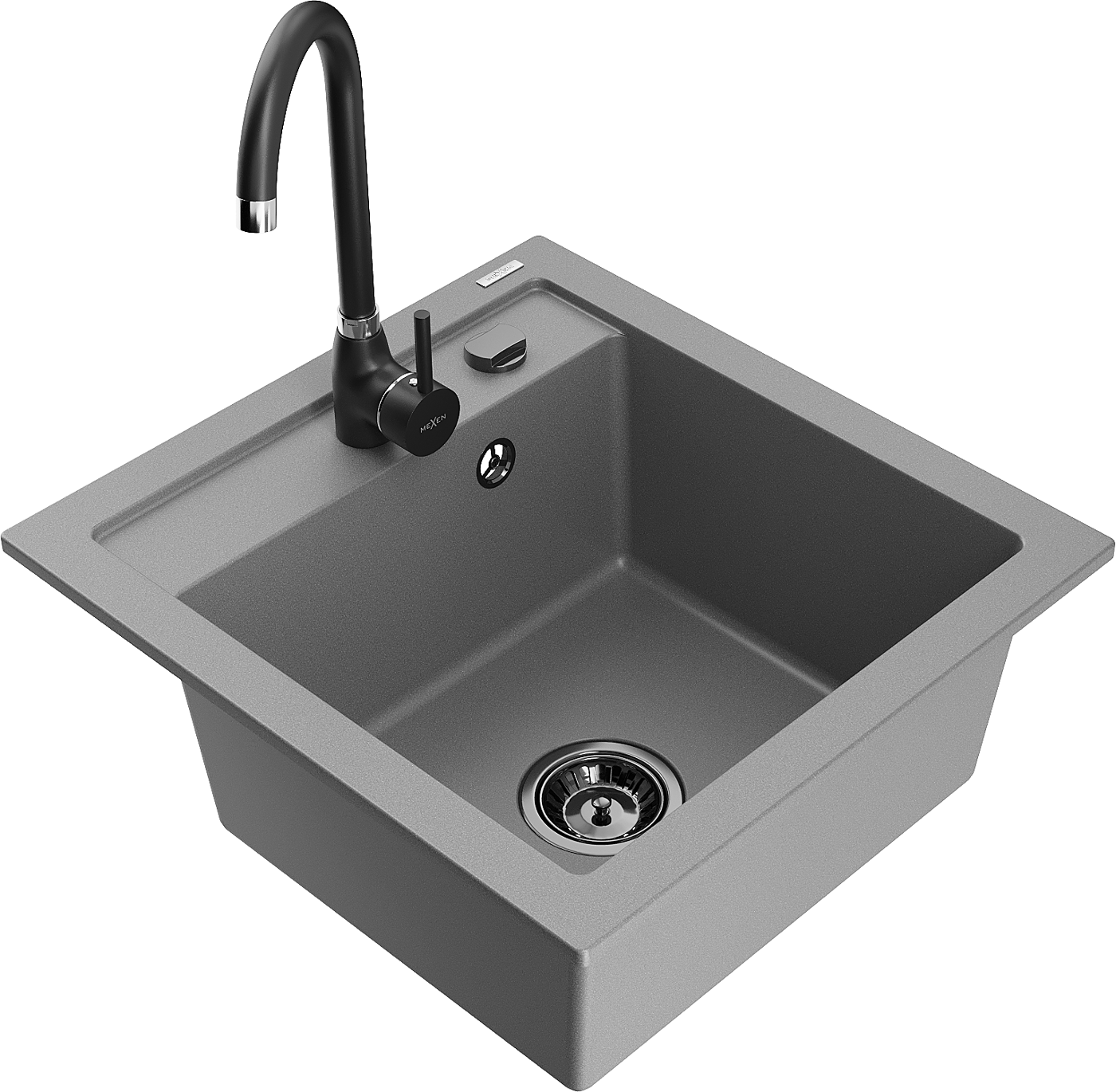 Mexen Vito chiuvetă de bucătărie din granit cu 1 compartiment, cu baterie de bucătărie Telma, gri - 6503-71-670200-70-B