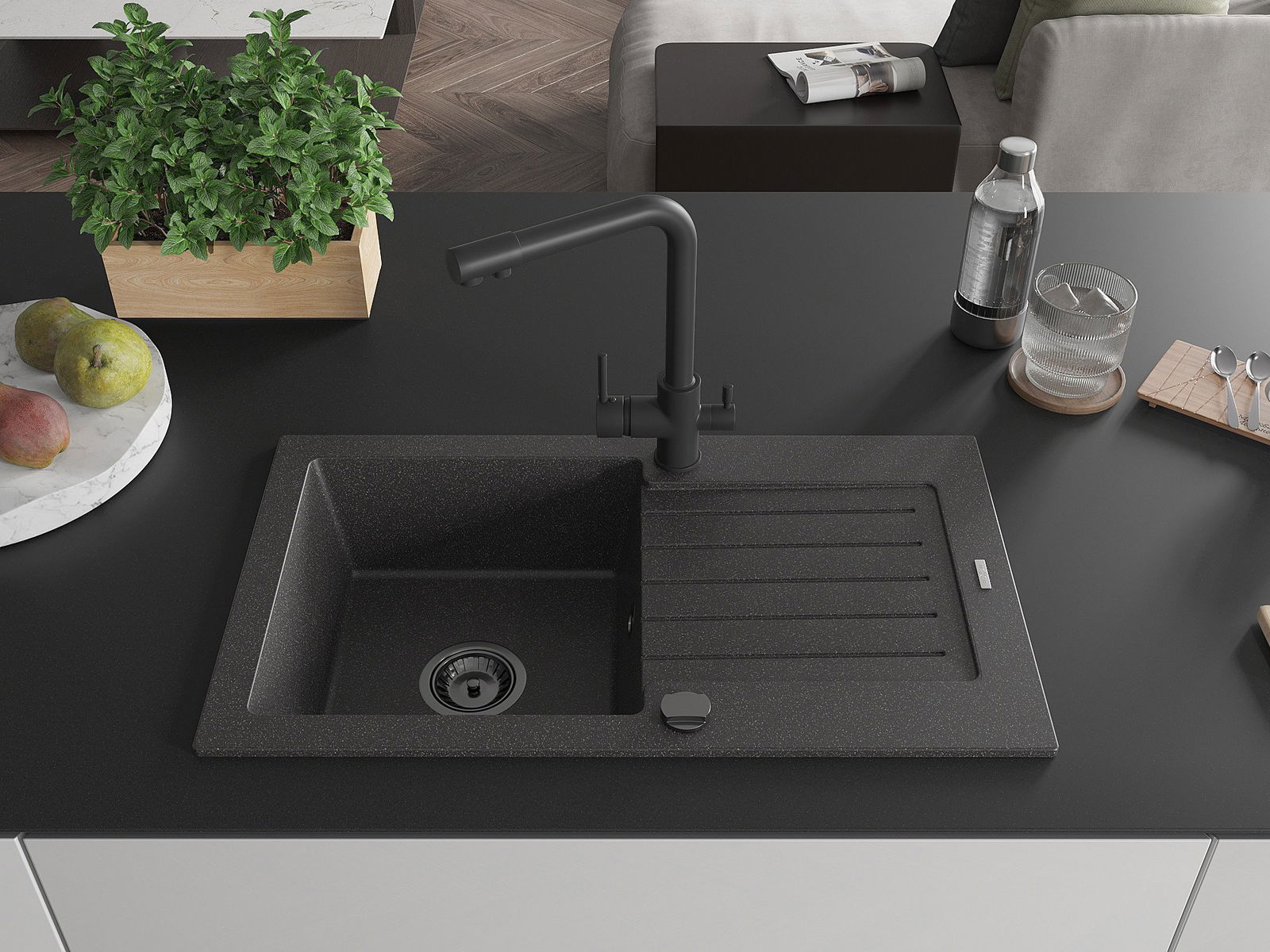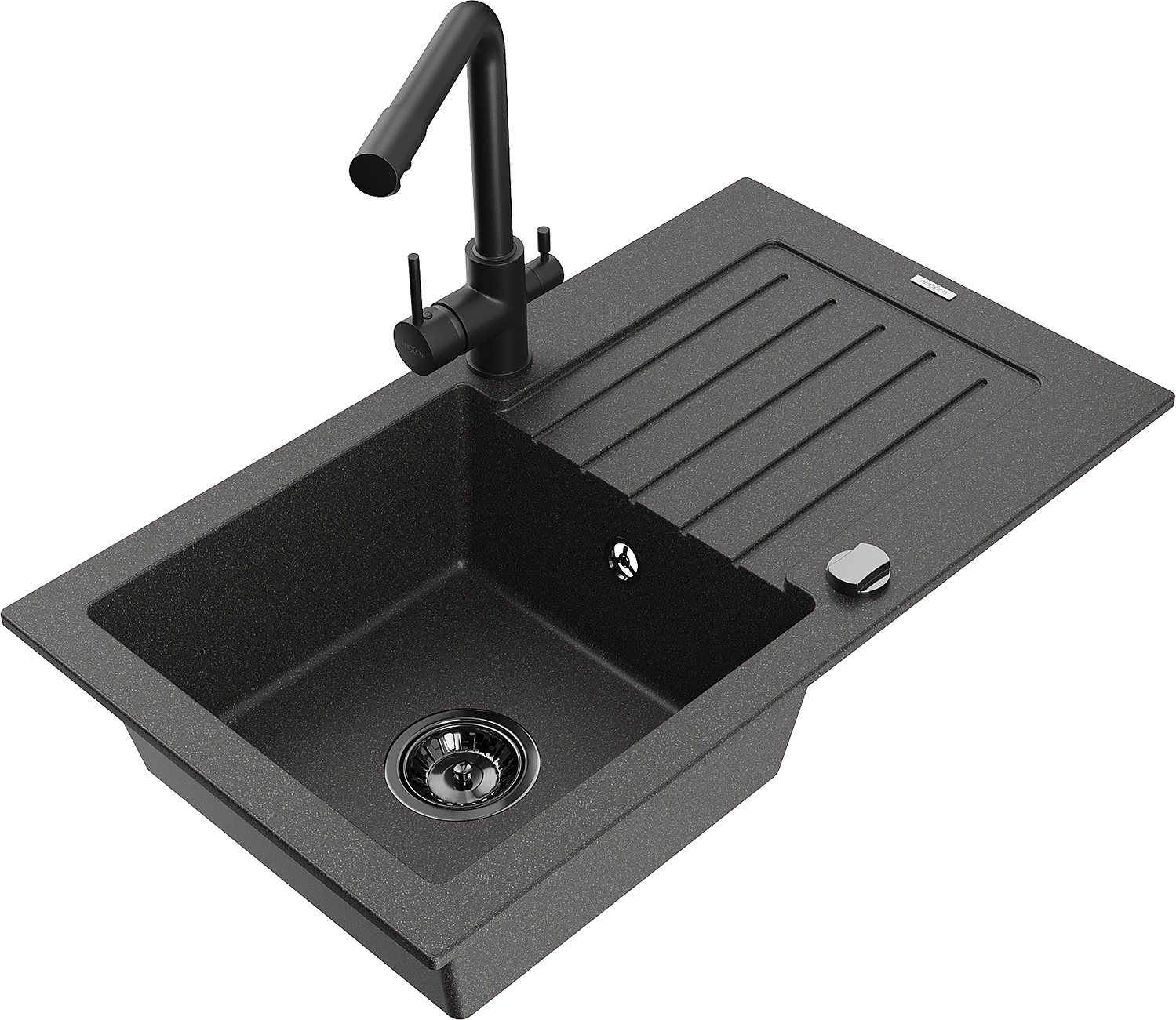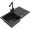 Mexen Pablo chiuvetă din granit cu 1 compartiment cu picurător și baterie de bucătărie Duero, negru pătat