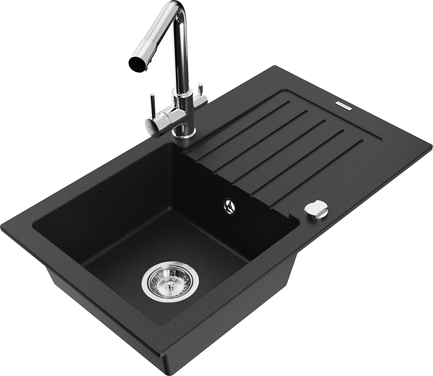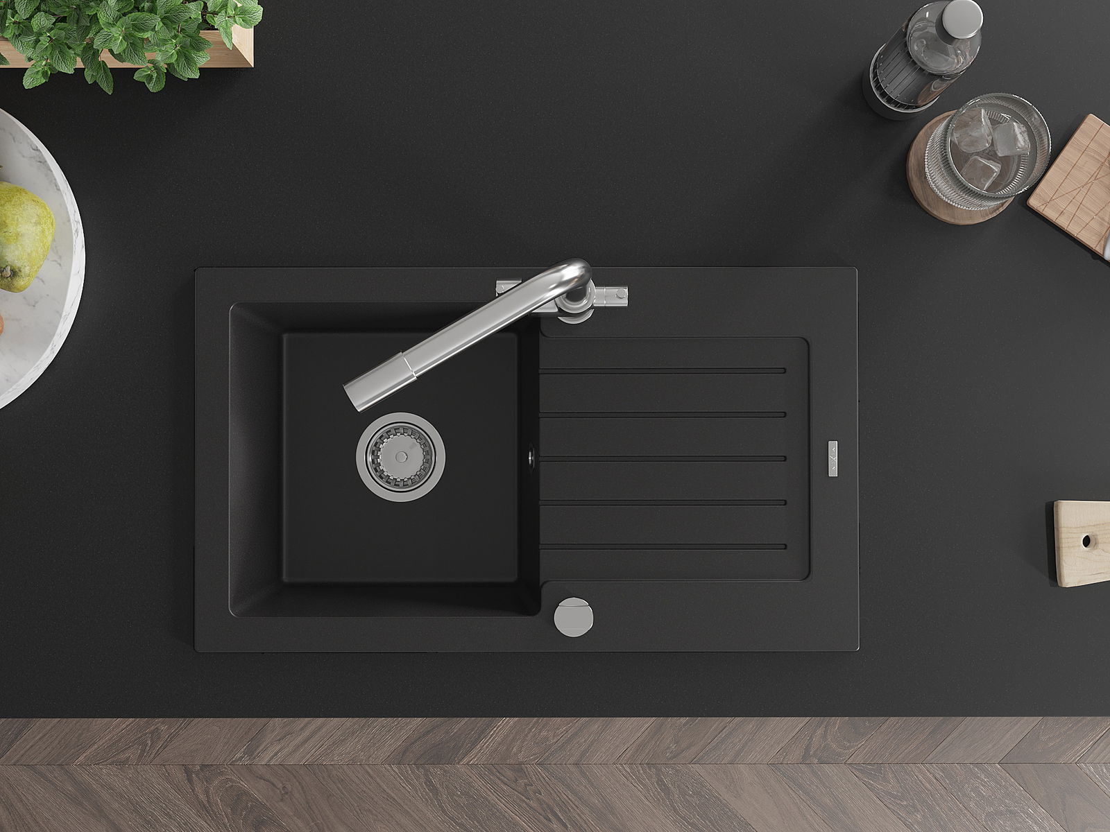 Mexen Pablo chiuvetă de granit cu 1 compartiment cu scurgător și baterie de bucătărie Duero, negru - 6510-77-671600-00