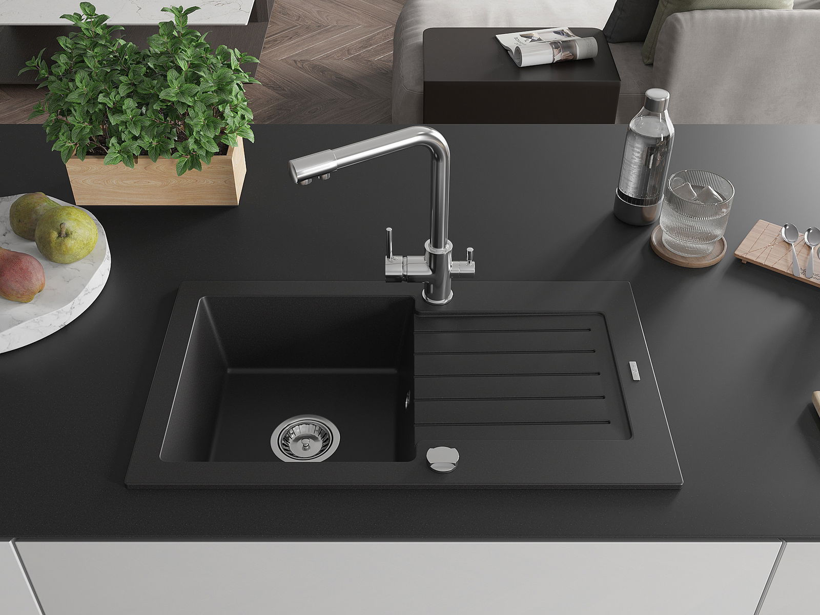 Chiuveta a fost realizată din granit de înaltă calitate. Reprezintă un complement elegant și, mai presus de toate, practic pentru orice bucătărie, indiferent de stilul său. Calitatea înaltă și durabilitatea granitului asigură o utilizare de lungă durată.