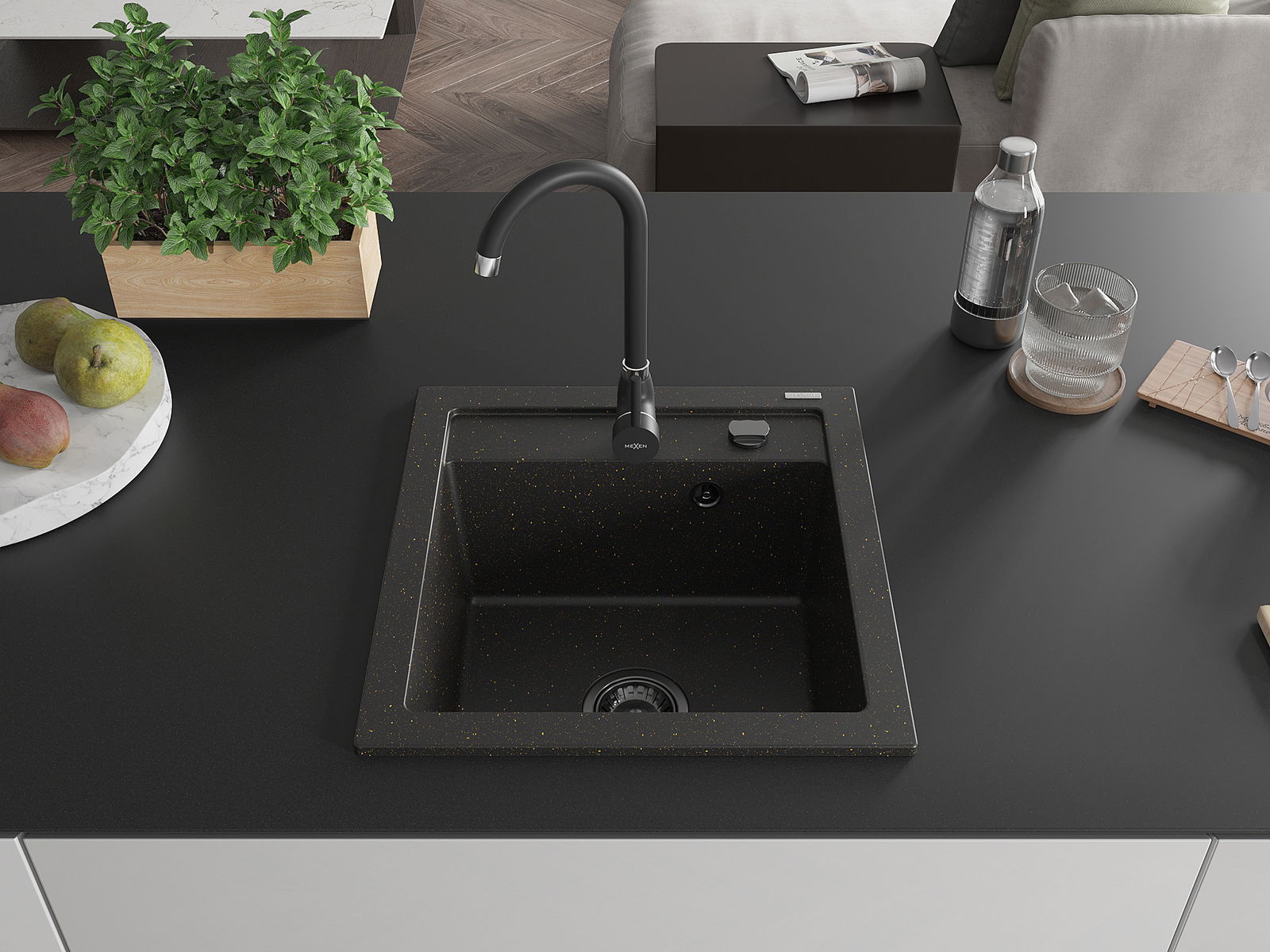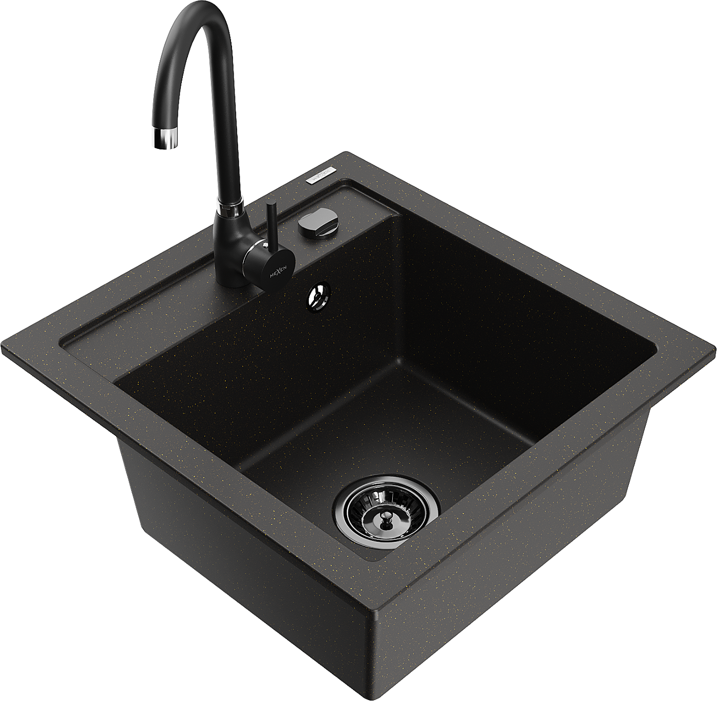 Mexen Vito chiuvetă de bucătărie din granit cu 1 compartiment și robinet Telma, negru/auriu metalic - 6503-75-670200-70-B