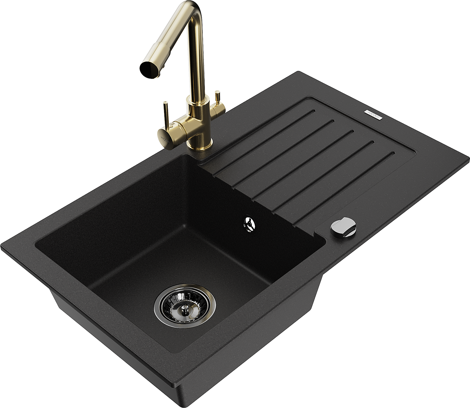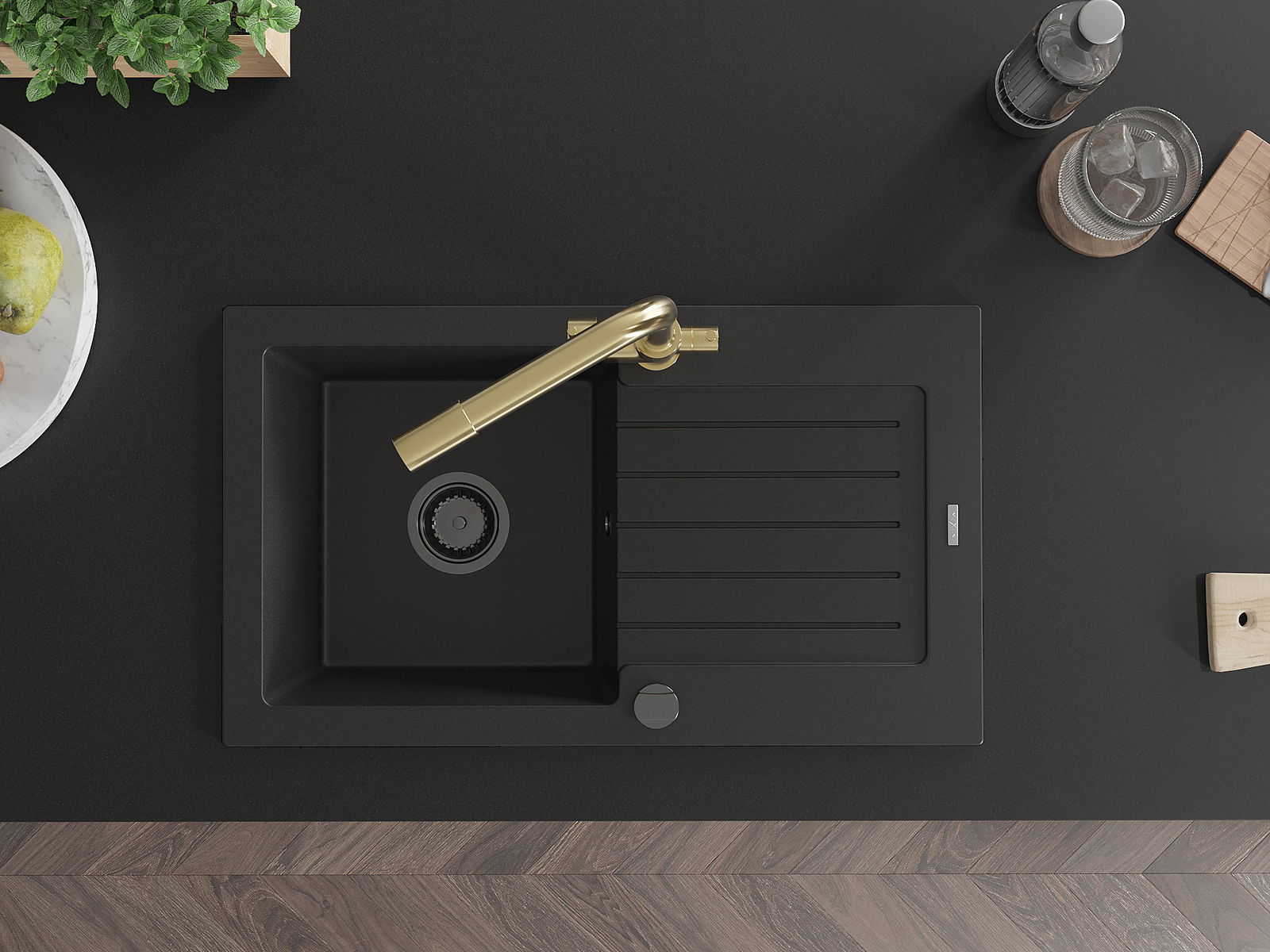 Mexen Pablo chiuvetă de granit cu 1 compartiment, cu scurgător și baterie de bucătărie Duero, negru - 6510-77-671600-50-B