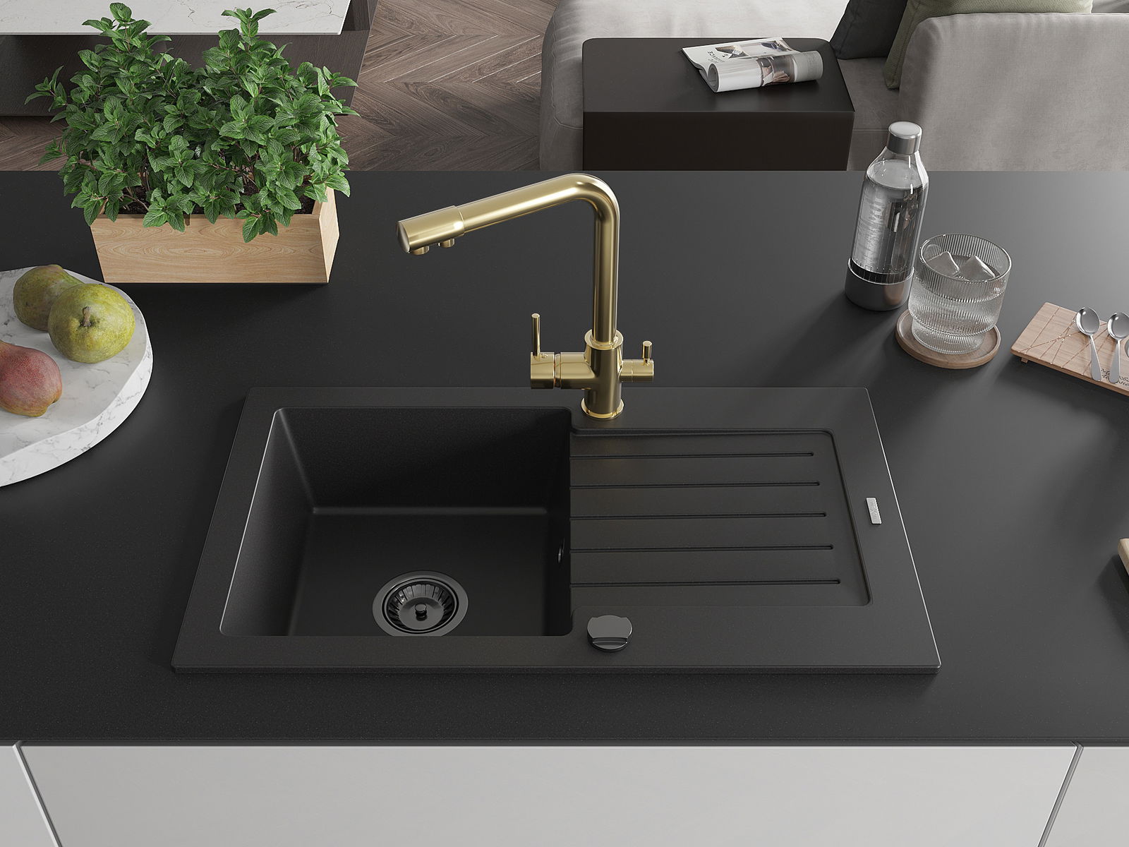 Chiuveta a fost realizată din granit de înaltă calitate. Reprezintă un complement elegant și, mai presus de toate, practic pentru orice bucătărie, indiferent de stilul său. Calitatea înaltă și durabilitatea granitului asigură o utilizare de lungă durată.