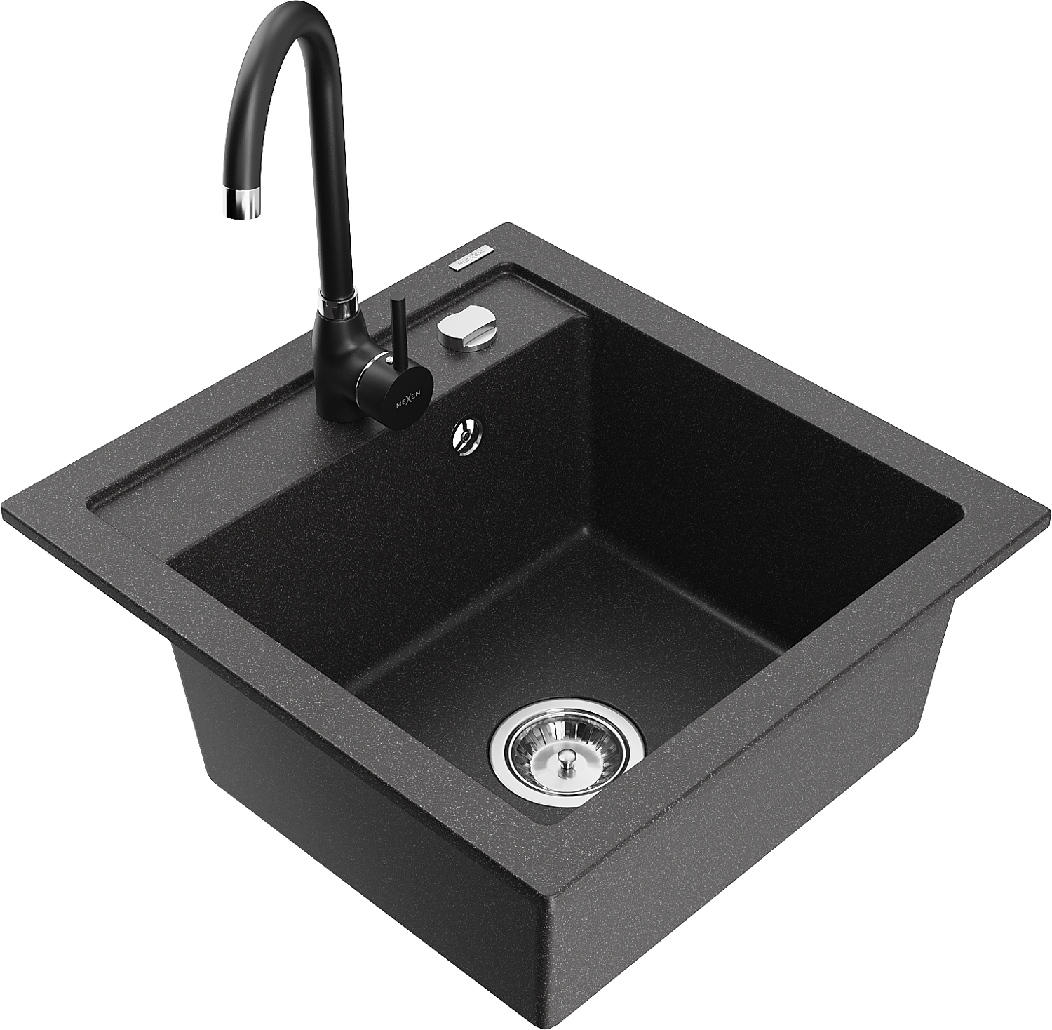 Mexen Vito chiuvetă de bucătărie din granit cu 1 compartiment și baterie de bucătărie Telma, negru pătat - 6503-76-670200-70
