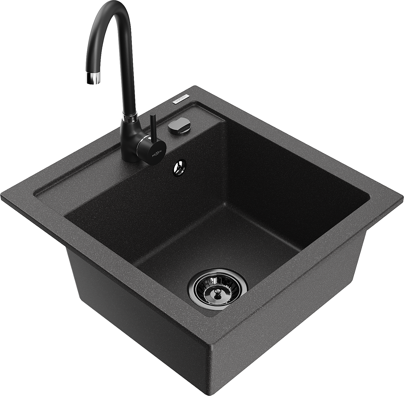 Mexen Vito chiuvetă de bucătărie din granit cu 1 compartiment și baterie Telma, negru stropit - 6503-76-670200-70-B