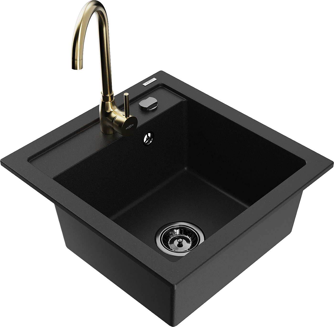 Mexen Vito chiuvetă de granit cu 1 compartiment și baterie de bucătărie Telma, negru - 6503-77-670200-50-B