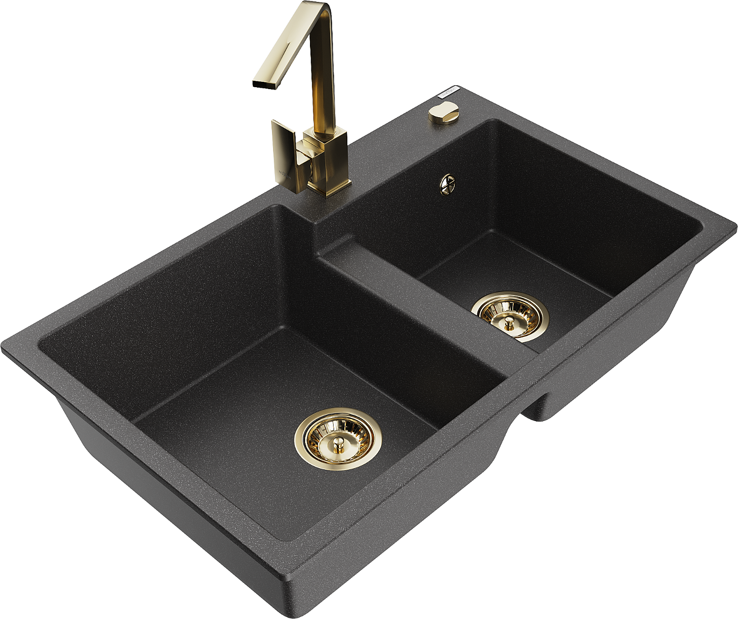 Mexen Tomas chiuvetă de granit cu 2 compartimente cu baterie de bucătărie Rita, negru pătat - 6516-76-670300-50