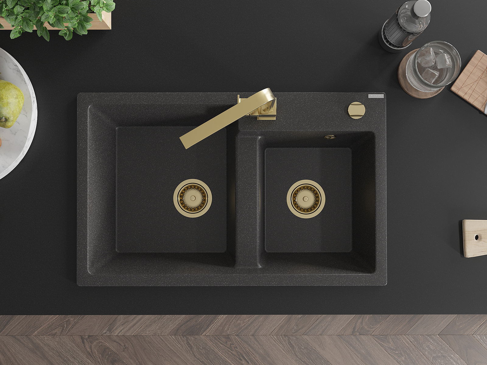 Chiuveta are o gaură prezentată cu un diametru de 35 mm pentru auto -burst. Poate fi folosit, printre altele Pentru montarea unui distribuitor de lichid care va elimina prezența sticlelor de plastic în bucătărie și îi va oferi un finisaj elegant.