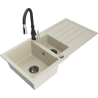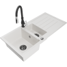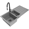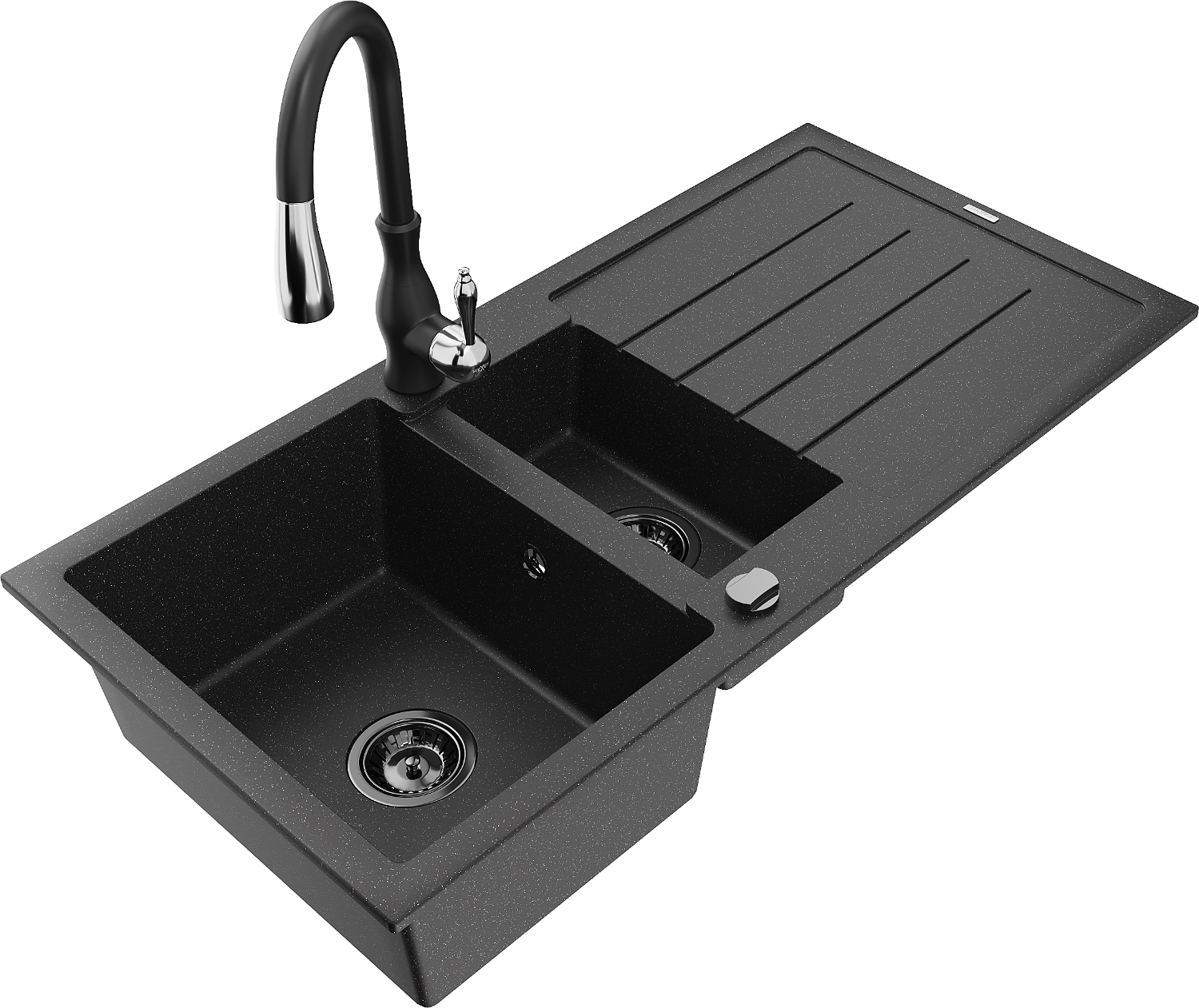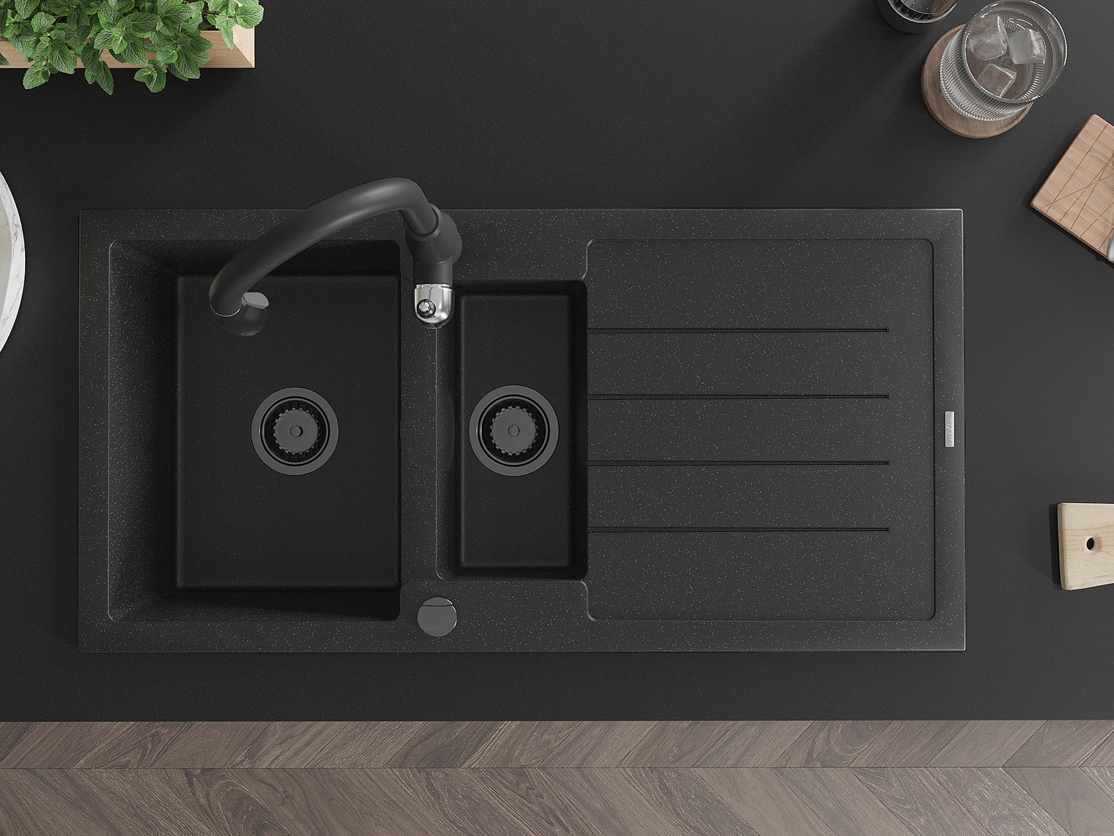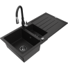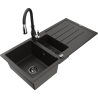 Mexen Andres chiuvetă de granit cu 1,5 compartimente cu picurător și baterie de bucătărie Savita, negru/argintiu