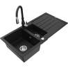 Mexen Andres chiuvetă din granit cu 1,5 compartimente cu scurgător și baterie de bucătărie Savita, negru/auriu metalizat