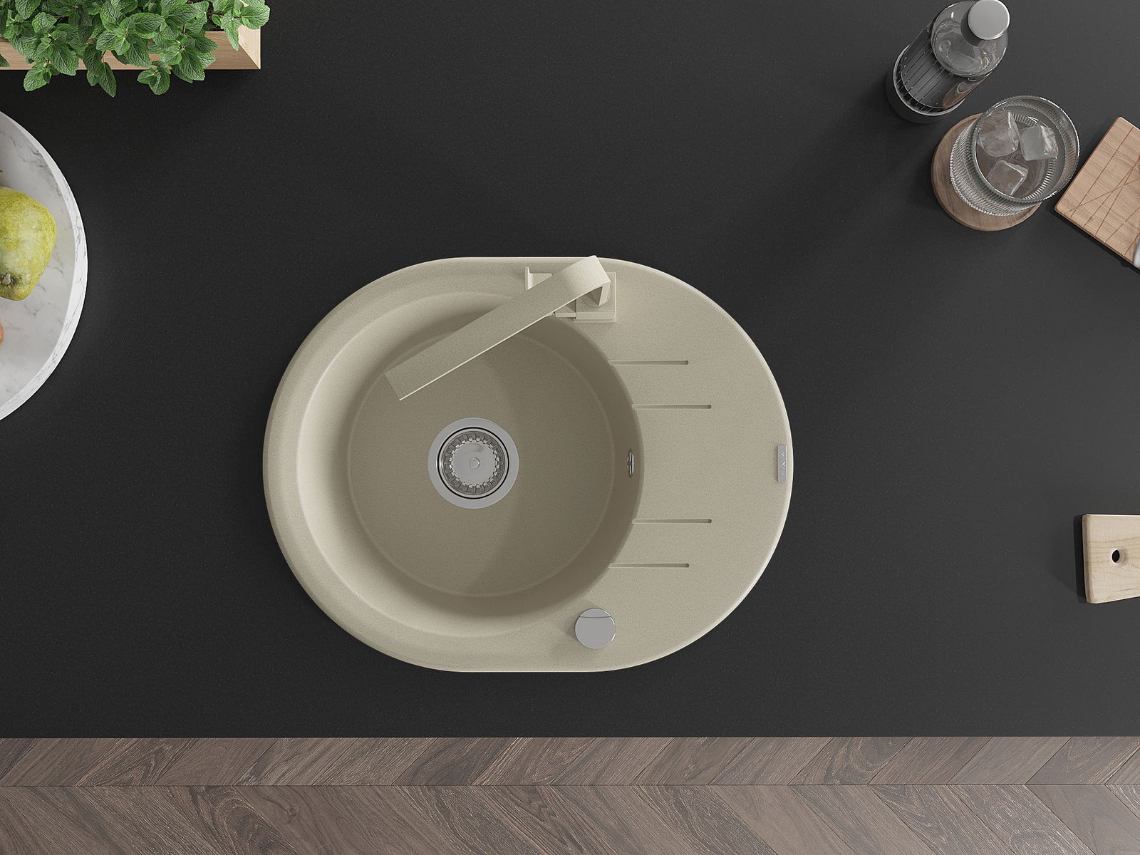 Chiuveta a fost realizată din granit de înaltă calitate. Reprezintă un complement elegant și, mai presus de toate, practic pentru orice bucătărie, indiferent de stilul acesteia. Calitatea înaltă și durabilitatea granitului asigură o utilizare de lungă durată.