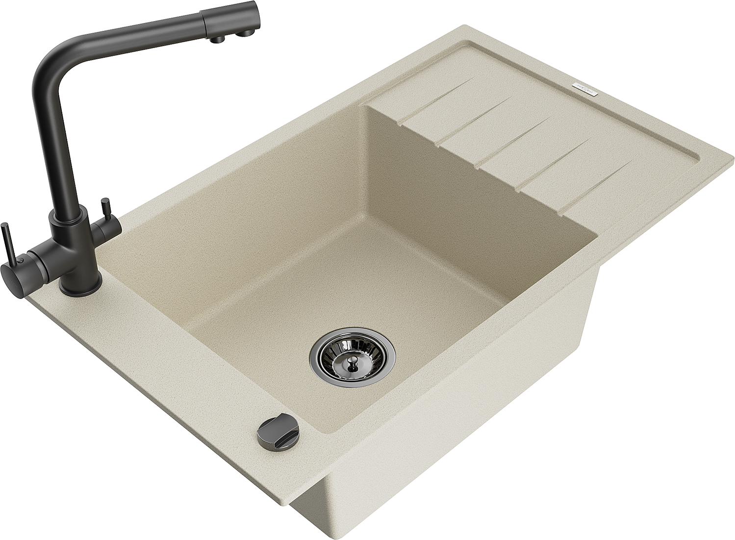 Suprafața chiuvetei este rezistentă la pete și decolorarea, datorită căreia este ușor de curățat și își păstrează culoarea mult timp. Estetică și practic completarea fiecărei bucătării.