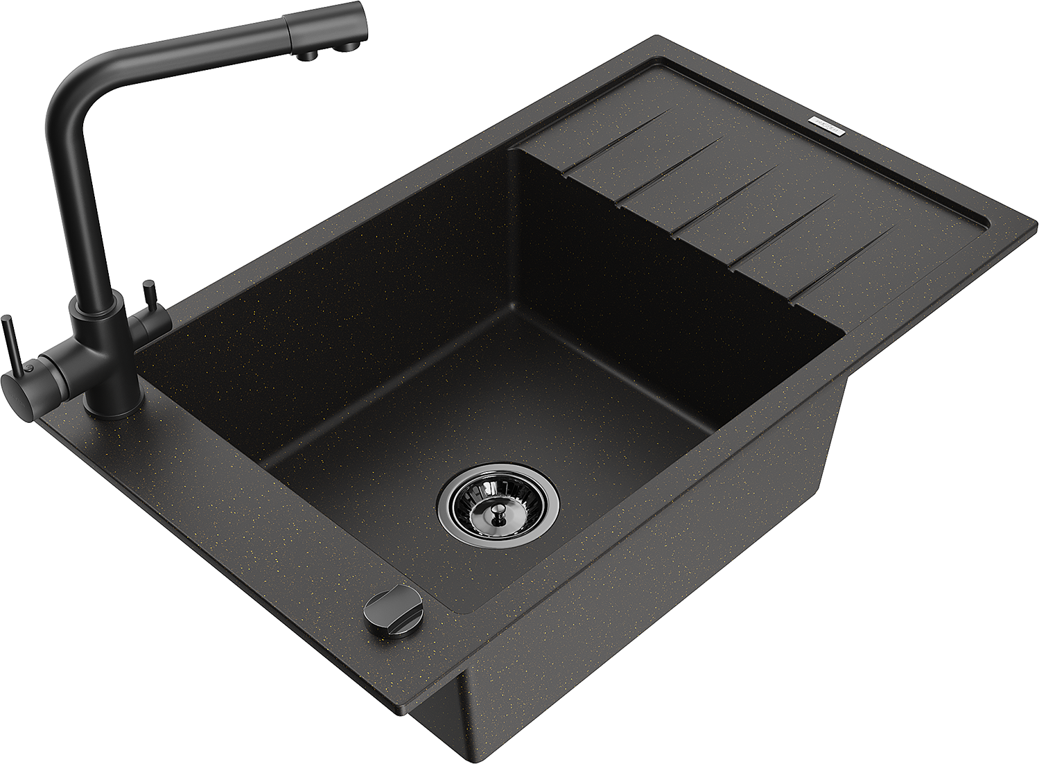 Mexen Elias chiuvetă de bucătărie din granit cu 1 compartiment, cu picurător și baterie de bucătărie Duero, negru/auriu metaliz?