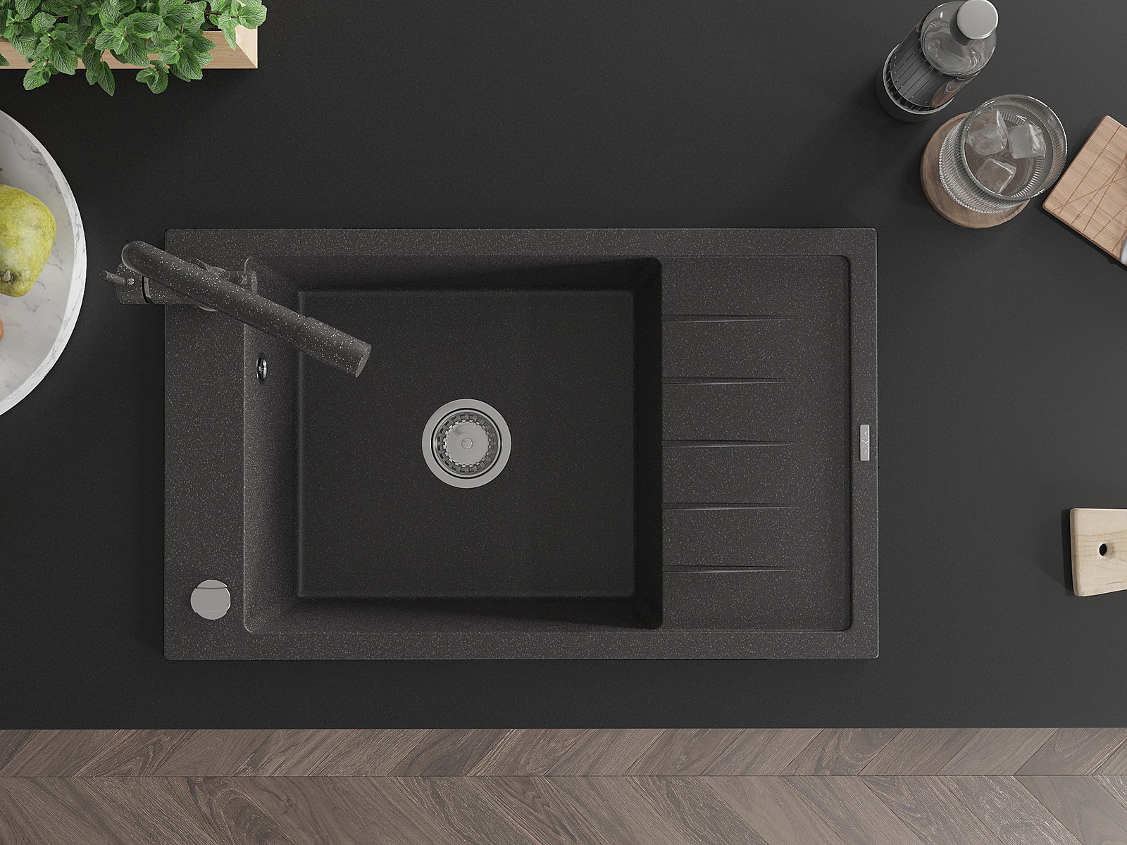 Chiuveta a fost realizată din granit de înaltă calitate. Reprezintă un complement elegant și, mai presus de toate, practic pentru orice bucătărie, indiferent de stilul acesteia. Calitatea înaltă și durabilitatea granitului asigură o utilizare de lungă durată.