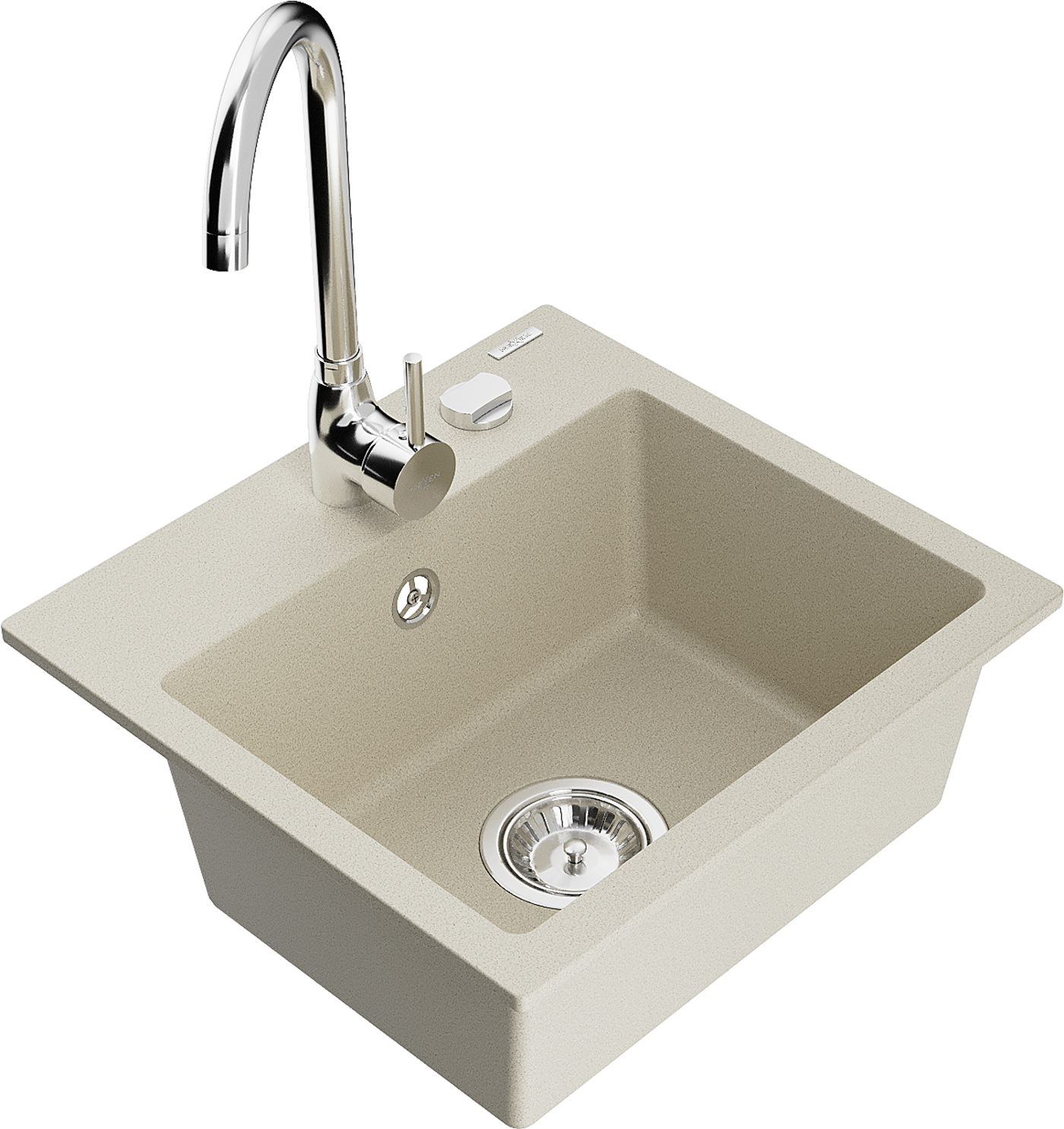 Mexen Milo chiuvetă de bucătărie granit 1-cameră cu robinet de bucătărie Telma, bej - 6505-69-670200-00